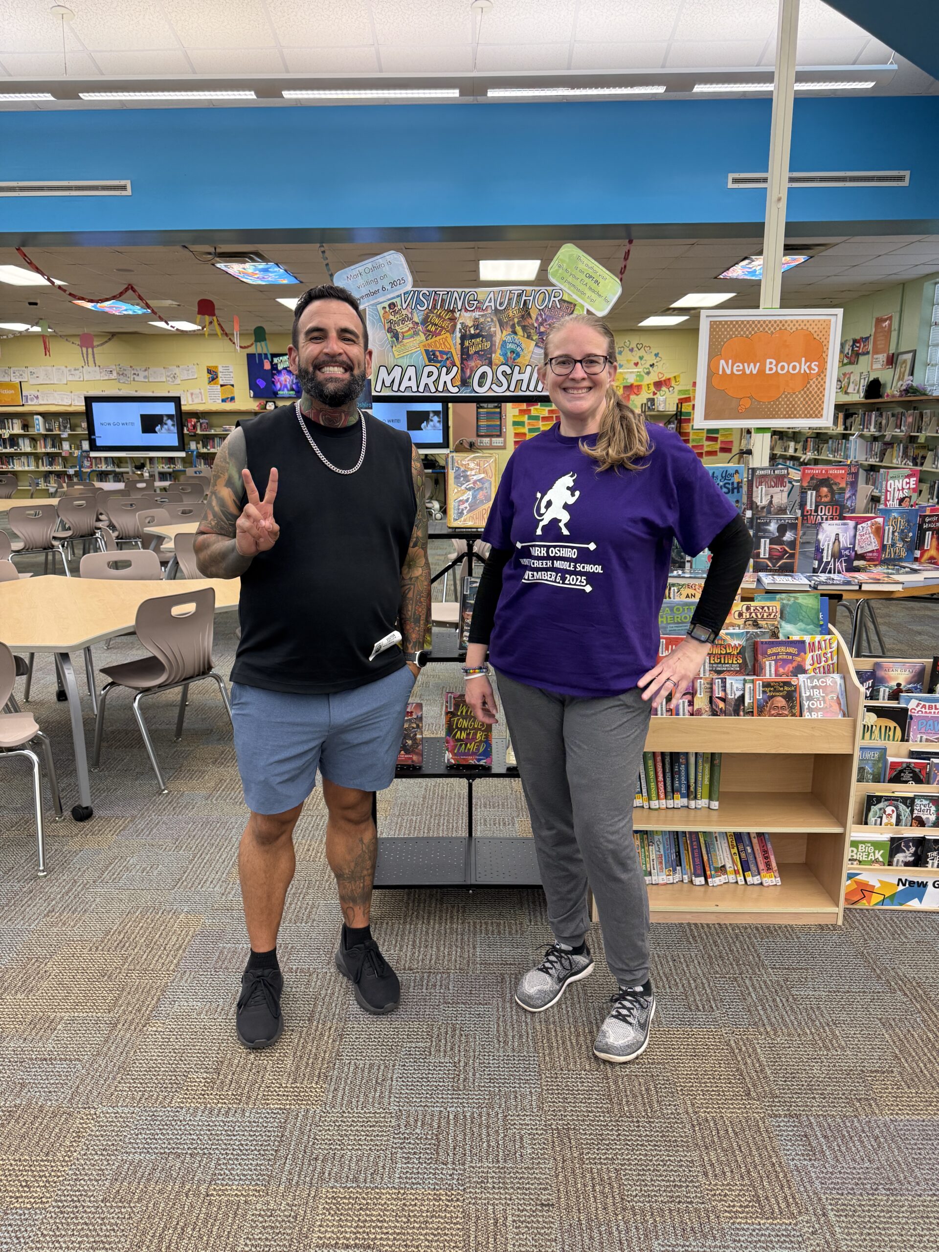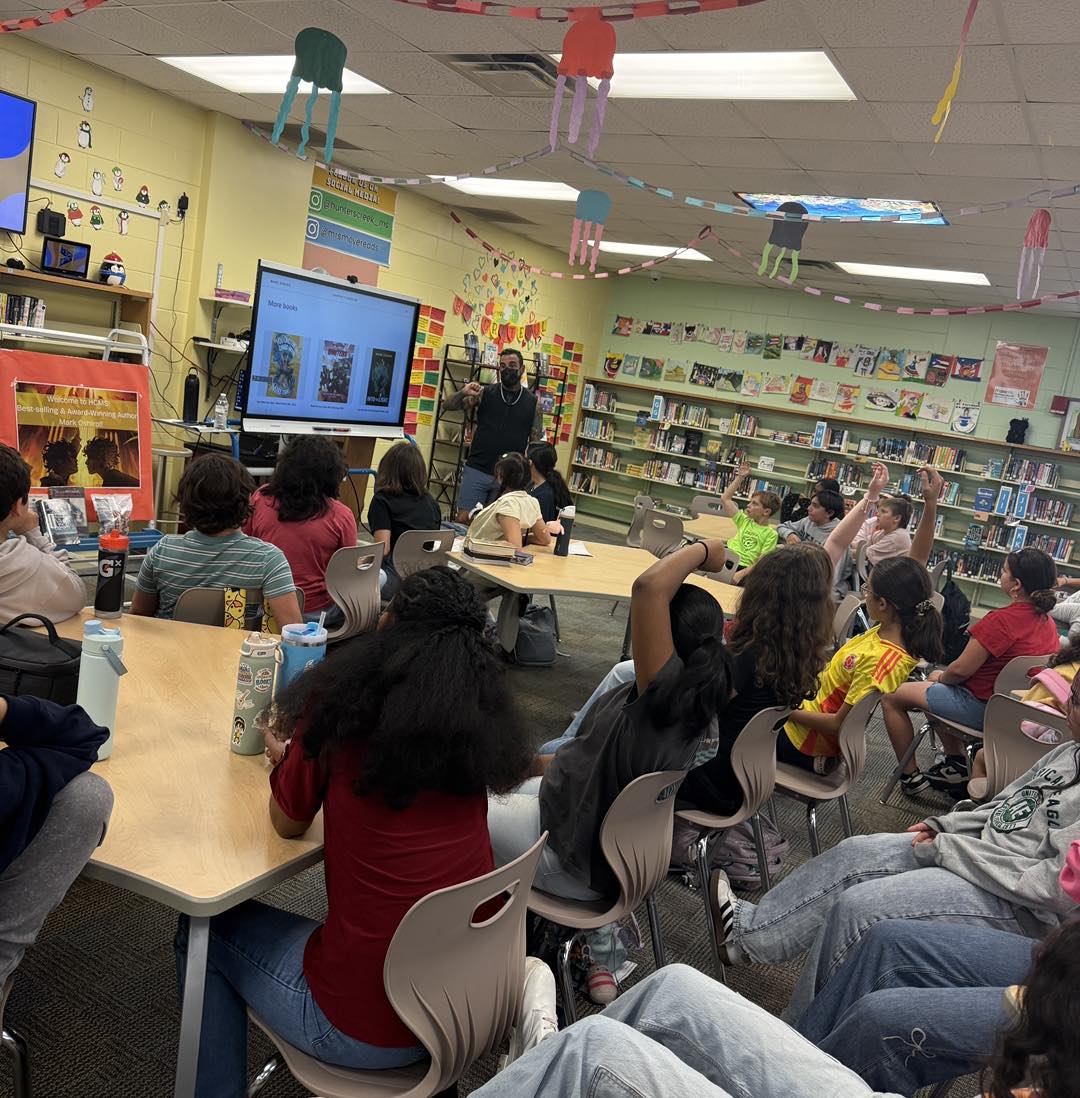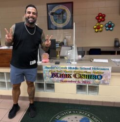This year, in addition to our yearly author visit that we’ll have in February (2026: Christina Diaz Gonzalez, 2025: George O’Connor, 2024: Jerry Craft, 2023: Christina Diaz Gonzalez, 2022: Nathan Hale, 2020: Neal Shusterman, 2019: Jennifer A. Nielsen), a colleague and I were lucky enough to win an auction for a full day visit from Mark Oshiro!