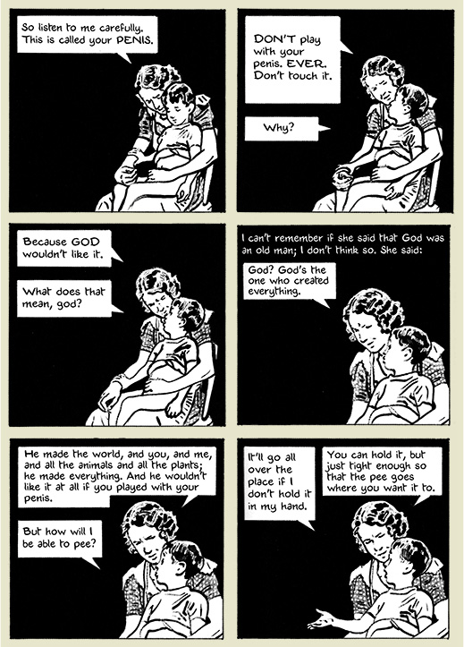Flagged Passage: I’ve included a section that stands out to me. It is a bit peculiar to include in a graphic novel, but there is a lesson in the pages that follow. I imagine that censors would be horrified to see this page alone, but within the context of the chapter, it is a very important scene.