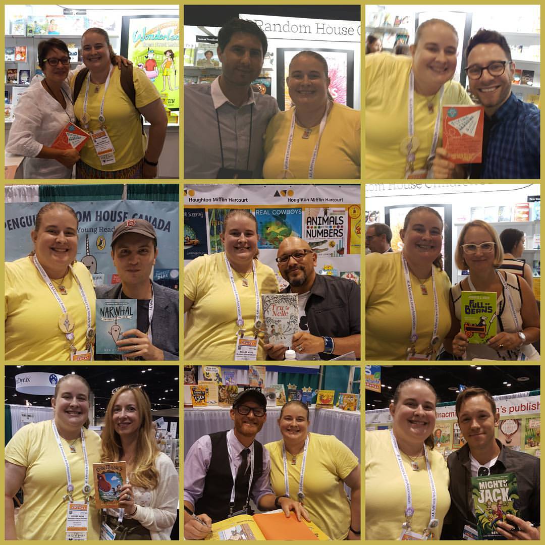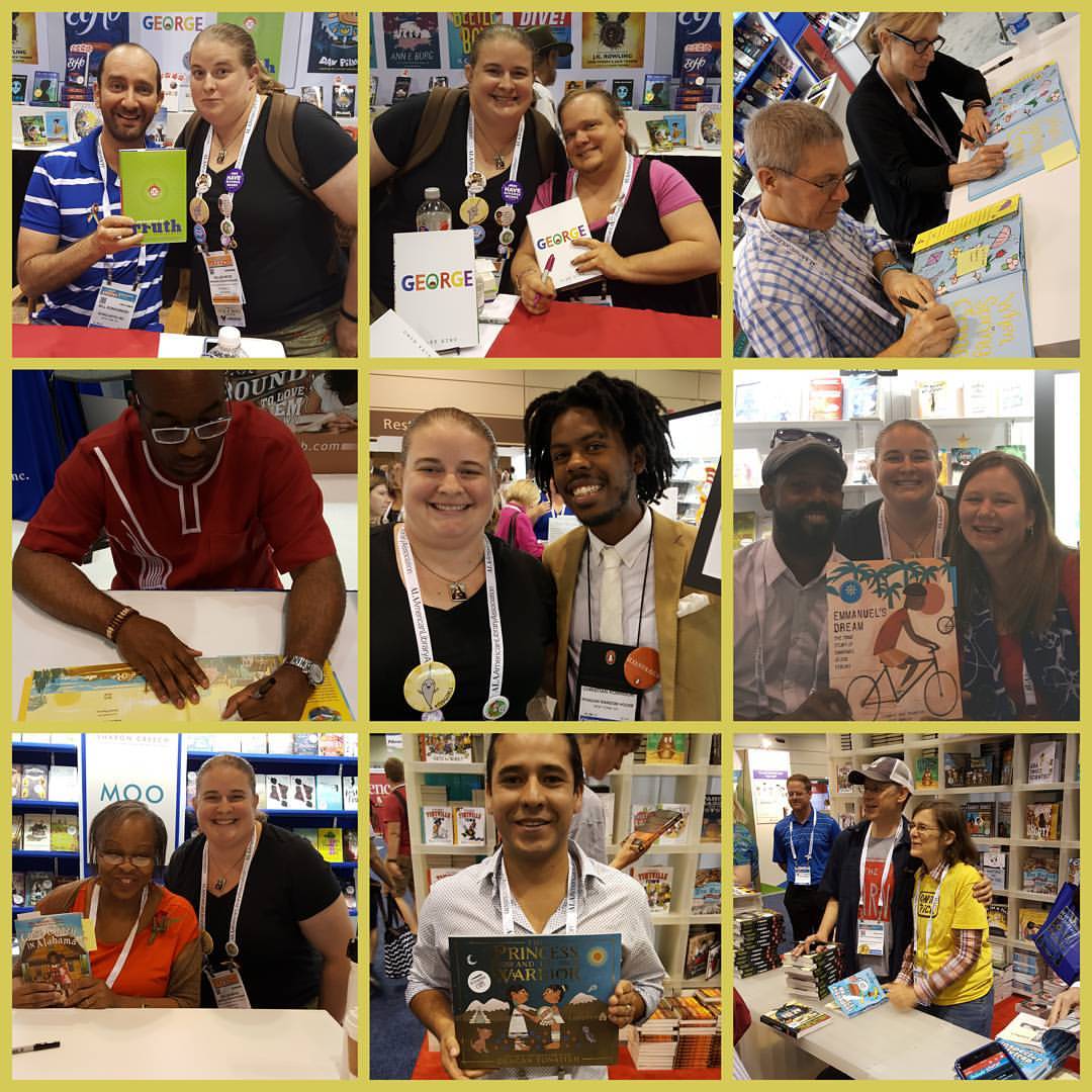 Authors/Illustrators: Meg Medina, Matt de la Pena, Tim Federle, Ben Clanton, G. Neri, Jenni Holm, Adele Griffin, Fred Koehler, Ben Hatke, EM Kokie, Dana Simpson, Bryan Hollier, Mo Willems, Laurie Keller, Dan Santat, Augusta Scattergood, Mike Maihack, Kate Messner, Jon Klassen, Don Tate, Chris Barton,  Bill Konigsberg, Alex Gino, Kevin Henkes, Laura Dronzek, Kwame Alexander, Christian Robinson, Sean Qualls, Rita Williams-Garcia, Duncan Tonatiuh, Tom Angleberger, Cece Bell, Rafael Lopez, Jon Klassen, Raina Telgemeier, Grace Lin, Kwame Alexander, Jordan Sonnenblick, Donalyn Miller with Travis Jonker, Adam Gidwitz, Lynda Mullaly Hunt, & Ben Clanton