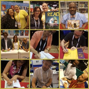 First, I must talk about the American Library Association Annual Conference & Exhibition. As you all may know, I am a faithful attender of the NCTE conference and ALAN workshop in November; however, I have never been to another big conference until ALA which was held this year here in Orlando from June 23rd-June 28th. Because I am not a librarian and I could only attend on the weekends, I only had the exhibitors pass as well tickets to the Coretta Scott King breakfast and the Newbery, Caldecott, and Wilder banquet. Having an exhibitor pass meant that I was able to hang around all day and just meet authors, get books, and hear about new books. I was in heaven! At NCTE, I am usually pretty busy, so I spend only a couple of hours there a day; however, at ALA, I was there for 6 or so hours each day! Here are some collages of the authors I saw: