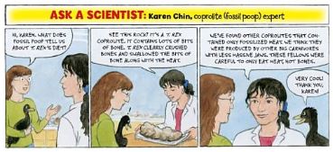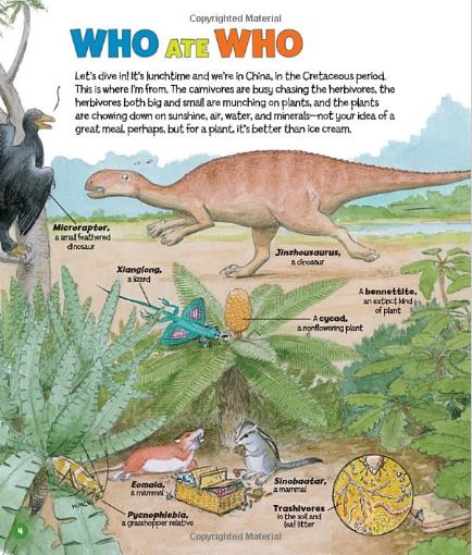 Discussion Questions: What are some ways paleontologists can tell which dinosaurs ate what?; What modern animals fit into each of the ‘vore categories in the text?; Why did the author choose to include the comic strip interviews throughout the book?
