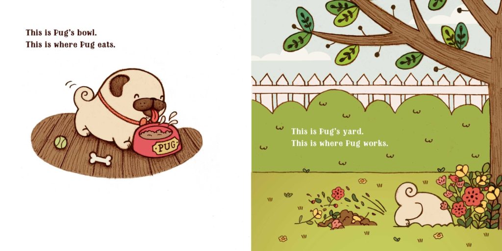 Pug is a very happy pup. He has his own yard, his own bowl, and even his own cozy bed! That is, until Pig moves in and starts eating from Pug’s bowl, interrupting Pug’s routine, and, worst of all, sleeping in Pug’s bed. Will Pug and Pig ever learn to live together as friends?