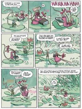 Summary: Musnet: The Mouse of Monet is a delightful new children’s graphic novel by Kickliy, set in Giverny, France in the mid 19th Century. The eponymous boy mouse travels the countryside searching for work and happens upon Monet’s garden. There, he takes a job with a brilliant squirrel artist, and in the process is inspired to paint as well. Will Musnet commit to painting in the classical manner, or in the thrilling new style of the human impressionists? Which way will his brush sway?