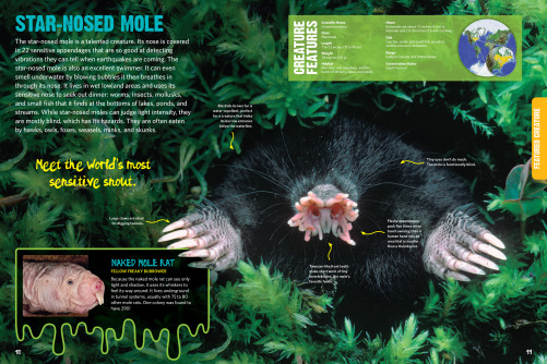 What I really like about Animal Planet texts is that they have a variety of spreads throughout the text and include really interesting information but also beautiful photographs. This text has four types of spreads: Gallery, a spread that explores a theme; Featured Creature, a spread that focuses on one animal; Creature Collection, a spread that compares and contrasts a group of animals; and Macroview, a spread that shows tiny details of small animals.