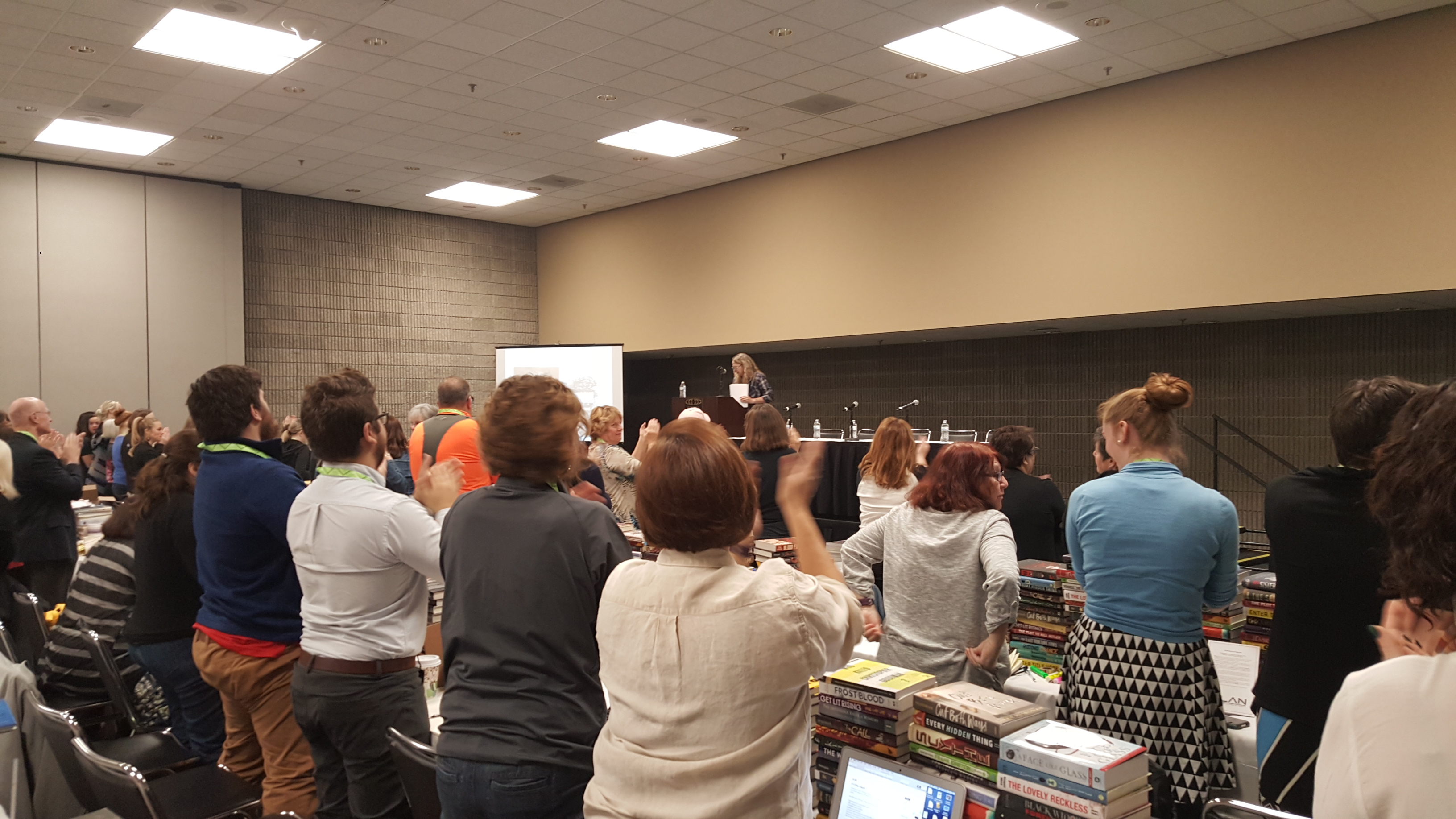 The amazingness that is the ALAN workshop’s first event is the ALAN breakfast on Saturday morning, and this one definitely start with a bang: S.E. Hinton was the esteemed speaker. I also love the breakfast because the ALAN Award and Ted Hipple Service Award are both given out. These two awards given to advocates for adolescent literature and ALAN are always accompanied by amazing speeches, and this year was no different!