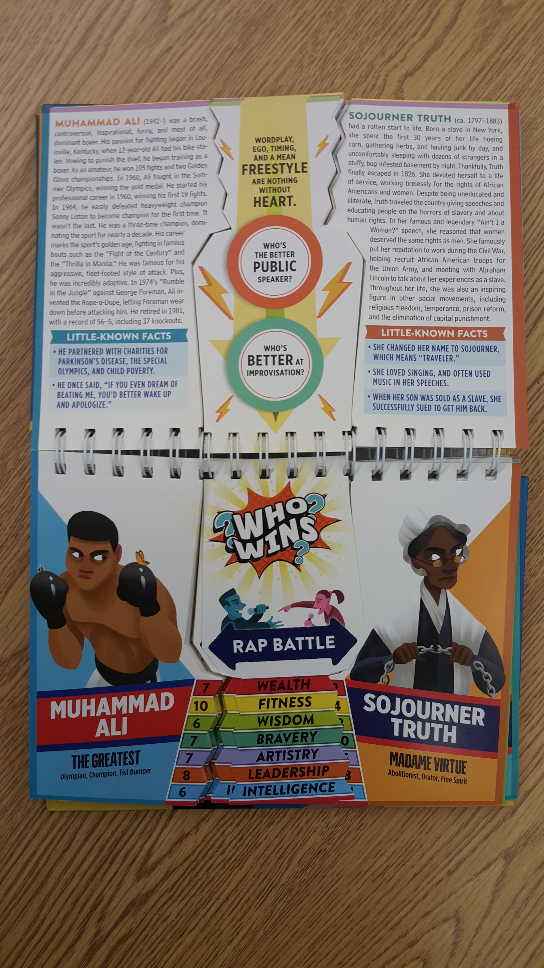 In Who Wins?: History, you decide the winner in over 50 head-to-head challenges between 100 of history’s most illustrious characters. But choosing the victor isn’t arbitrary. Readers must justify their answers using each of the historical figures’ six 0-10 category rankings in bravery, leadership, artistry, wealth, wisdom, and fitness; as well as facts from short biographies.
