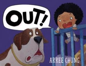 - Out! by Arree Chung: A one-word picture book whose illustrations tell the majority of the funny story about a baby and his dog friend.