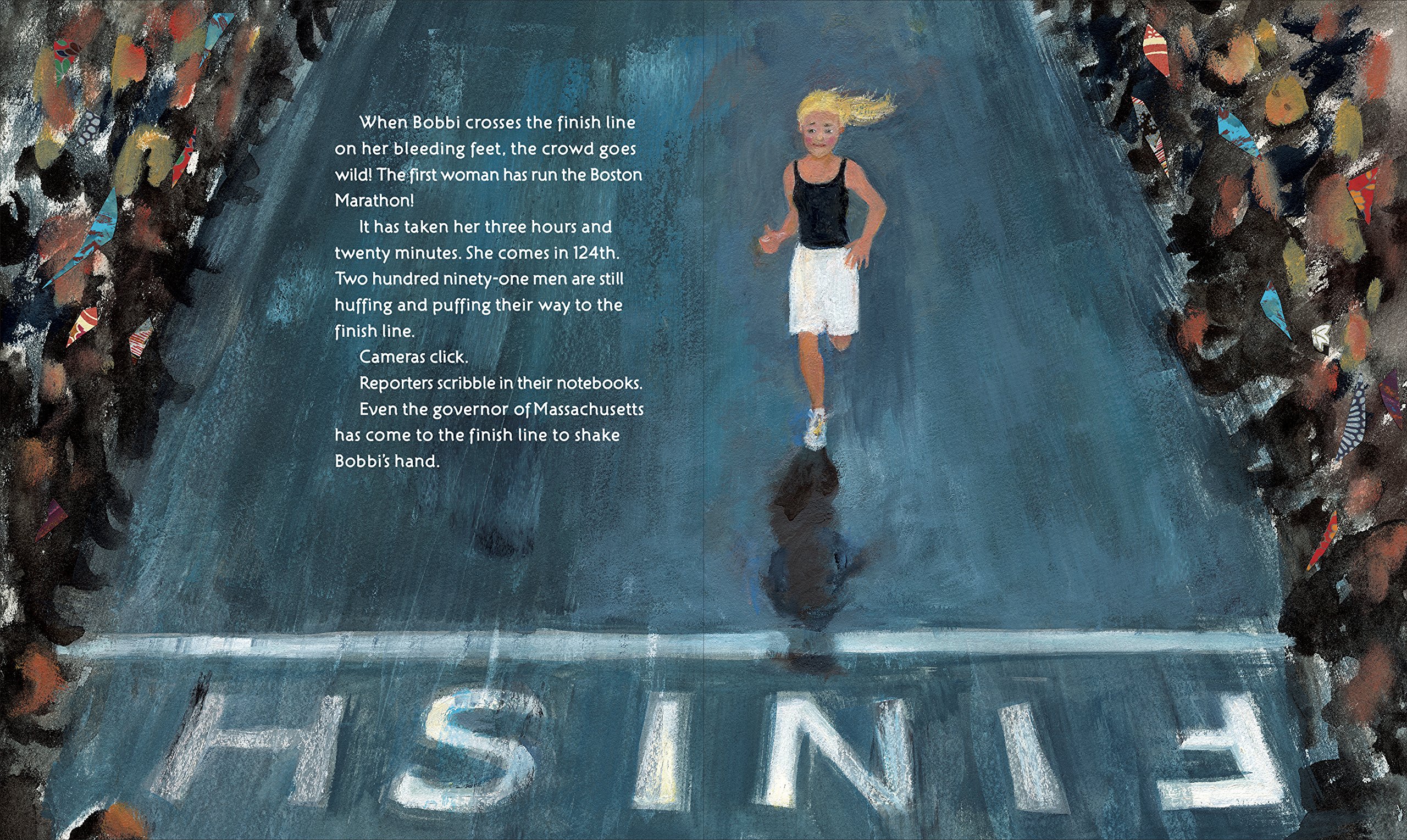 Summary: The inspiring story of the first female to run the Boston Marathon comes to life in stunningly vivid collage illustrations.