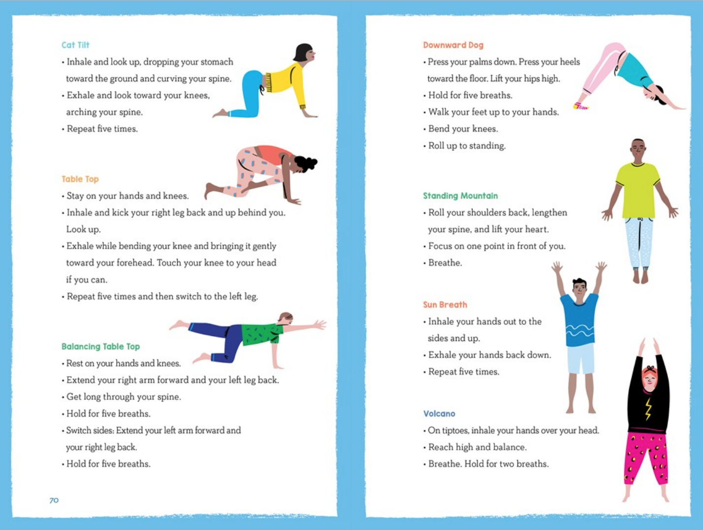 Teachers’ Tools for Navigation: As a classroom teacher, I would use this book as an initiation each day. It’s always very difficult to get students into the learning mindset. They come in with baggage and also with a lot of energy (positive and negative). This book serves as a reset and allows students to be mindful of their bodies and minds. It also allows students to destress to prepare for the classroom learning.