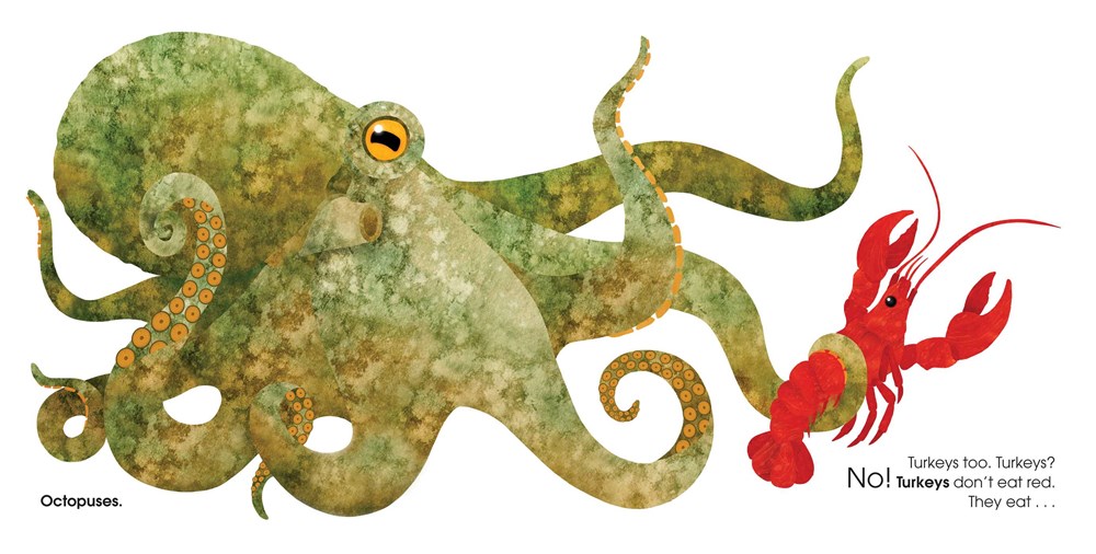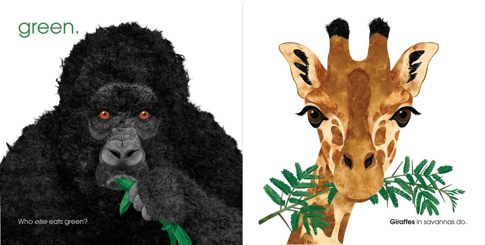 Animals eat a rainbow of different foods. Gorillas in the mountains eat green, octopi in the ocean eat red, and toucans in the canopy eat purple. Young animal enthusiasts will love digging into this lively journey around the world to explore the colorful diets of many animals, from the familiar to the exotic.