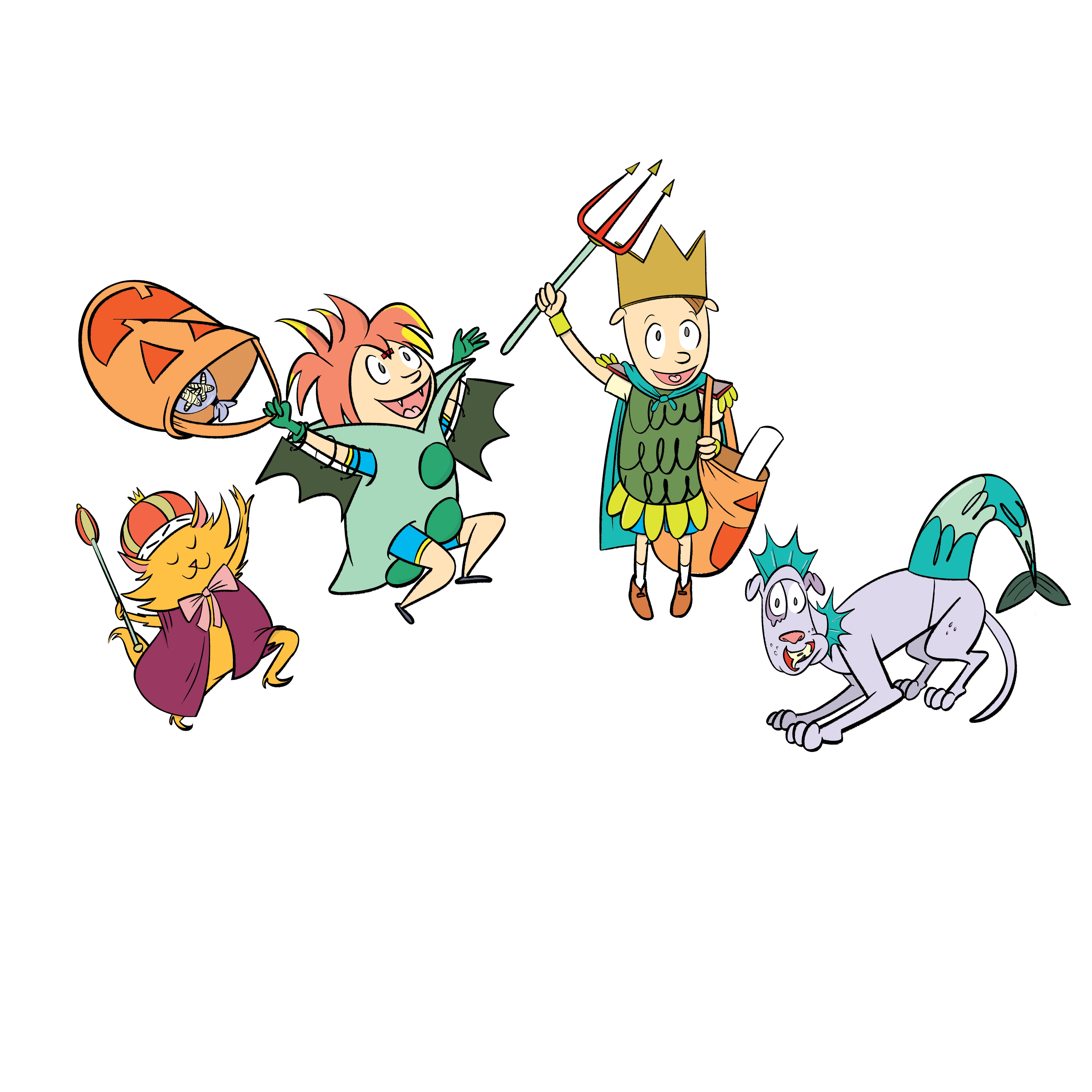 I got so much inspiration from all kids who have come to “The Book House” on Halloween: kids stuffed into vegetable costumes, like Lou Tweet. Vampires and zombies, like the Bobs. Ninjas, and superheroes, and mermaids, and unicorns, (along with people handing out toothbrushes, and awesome decorations and…well you name it!) Last year, a child came dressed as a jar of Skippy Peanut Butter, which as you can imagine made me smile.