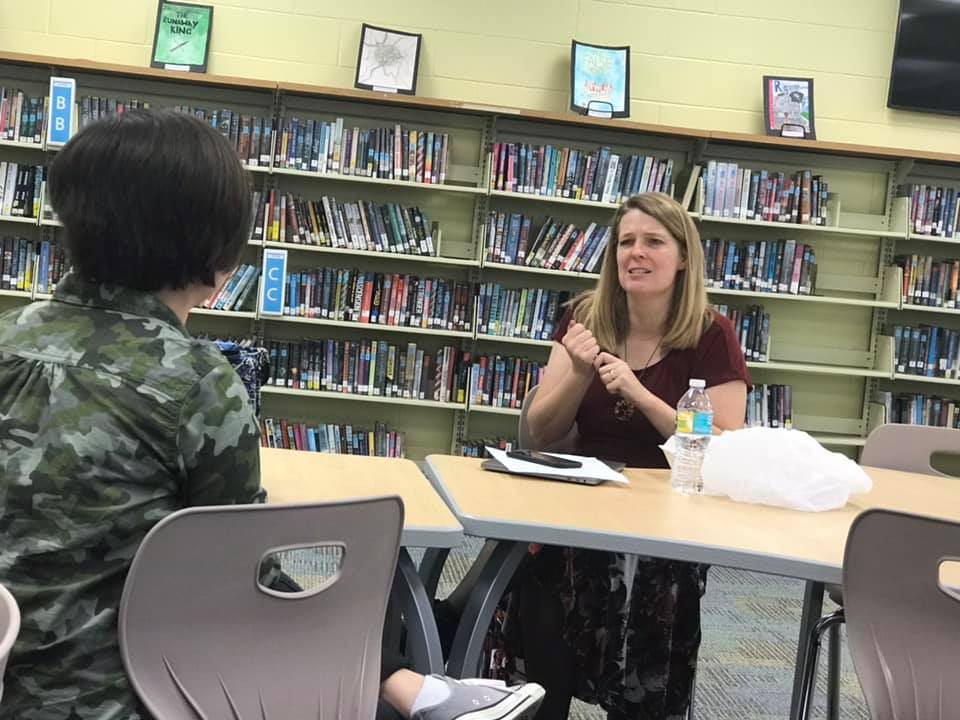 During each grade level’s lunch period, she also was kind enough to eat lunch with students who had read two or more of her books. During this time, they could get their books signed and ask exclusive questions.