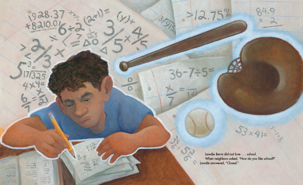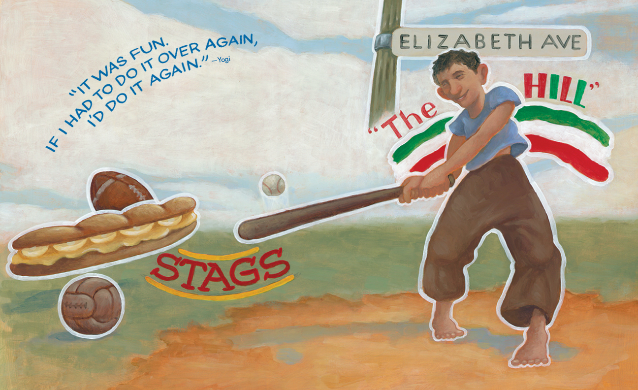 “(A) loving tribute to New York Yankee baseball legend Yogi Berra. Back matter documents his amazing career… and complement the storylike text that introduces a simple Italian kid from Saint Louis who loved his family, loved his friends, and really, really loved baseball. The illustrations capture the wistful, nostalgic mood… readers will come away with an appreciation for both the amazing athlete and the humble, unique individual. Source notes, a bibliography, and additional background information elevate this offering into viable research material, making this an entertaining and worthy addition to sports biography collections.” –Booklist