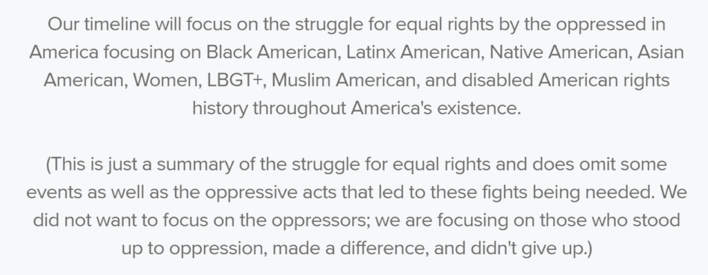 3 thoughts on “Student-Created Interactive Timeline on the Struggle for Equal Rights in America”