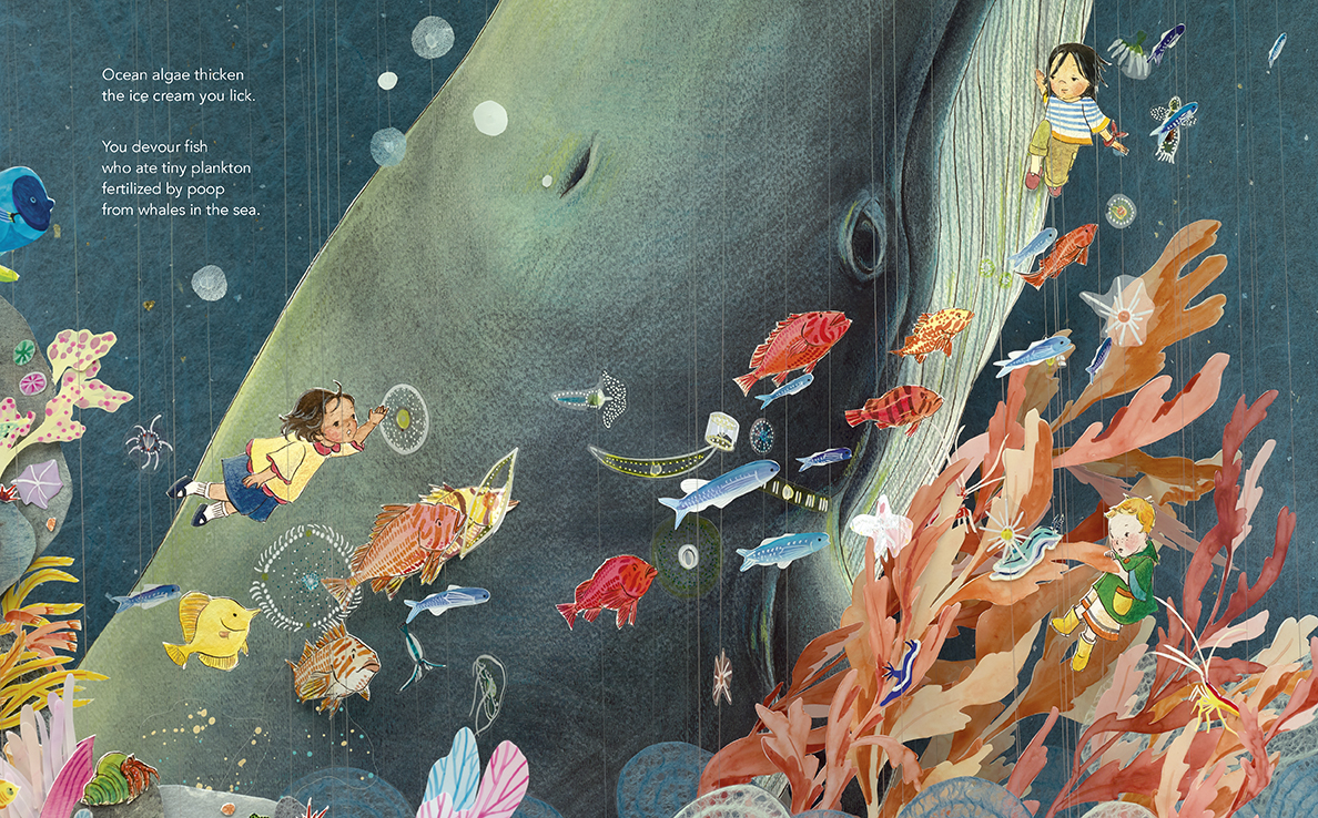 Drawing examples from the clouds and the cosmos, the seafloor and the surface of our skin, it explores how we are always surrounded and supported by nature. Whether it’s gravity holding us tight; our lungs breathing oxygen synthesized by plants; the countless microorganisms that build our immunity; or the whales whose waste fertilizes the plankton that feed the fish we eat: nature touches every aspect of how we live.