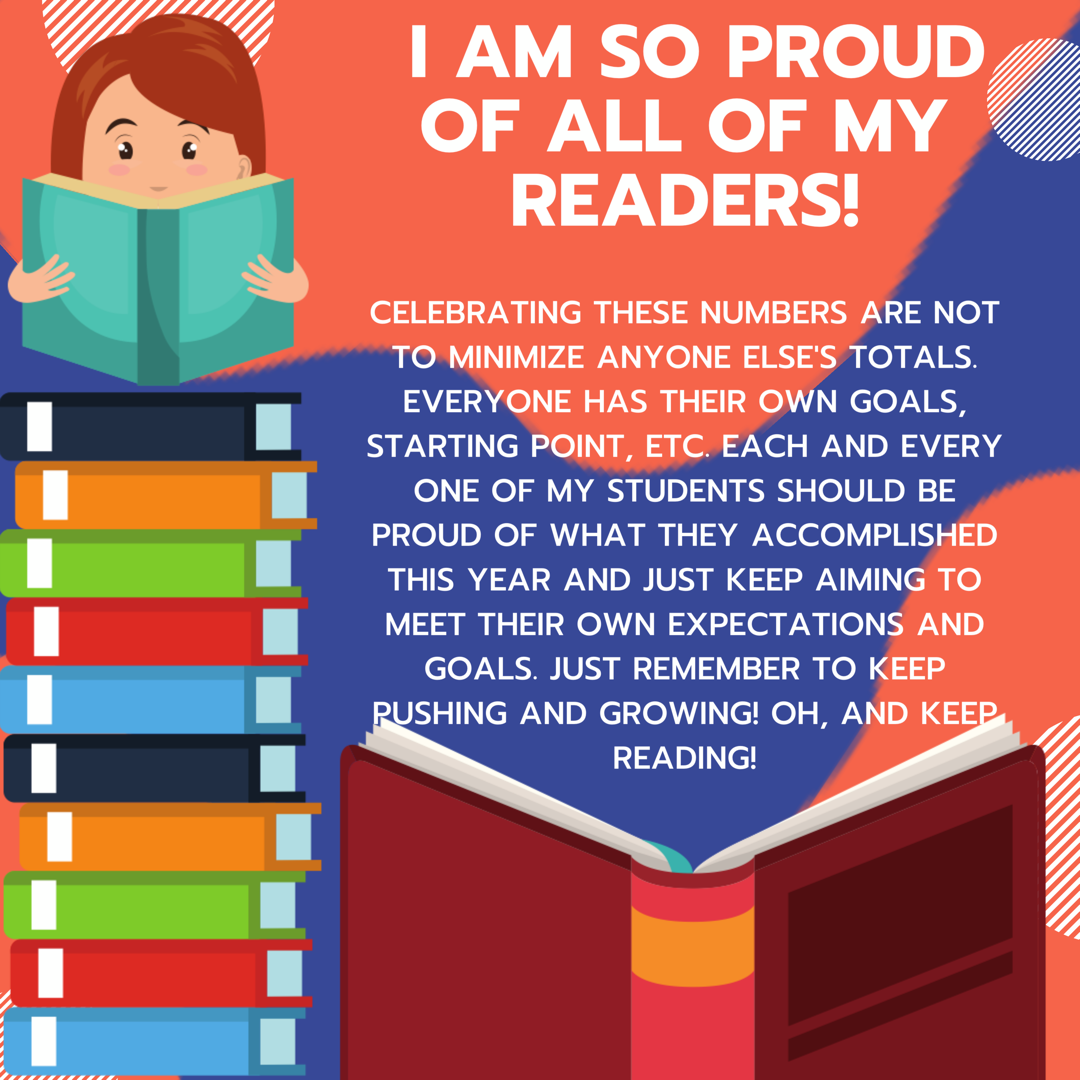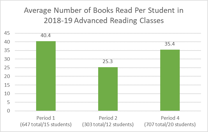 My students read A LOT again this year! My 47 Advanced Reading students read 1,657 books! That is an average of 35 books per student! I am so proud of them!