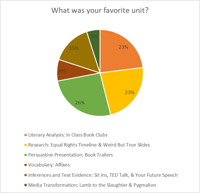 This is about the same as last year. I did change my status check to only weekly instead of daily to see how it went (some kids were saying asking every day made it seem more of a chore), but I really think by not asking daily, I didn’t keep up with my students’ progress and conference correctly. Back to daily-ish next year!