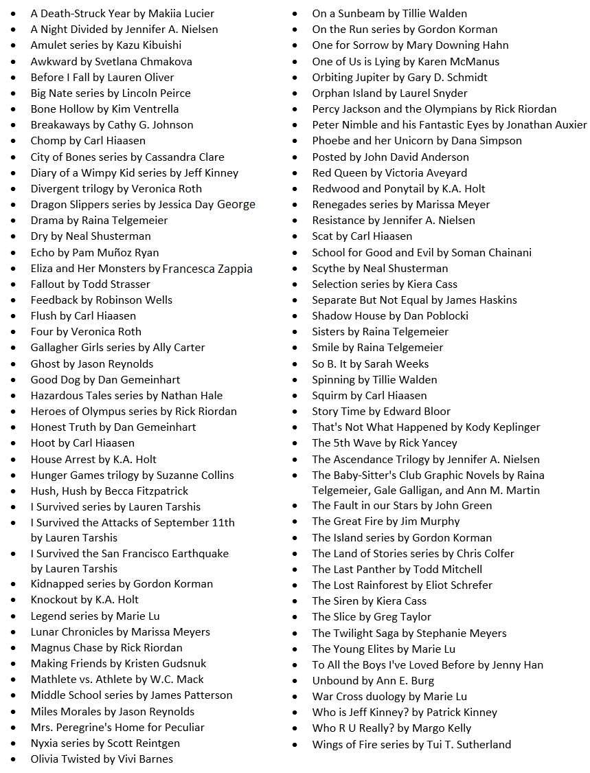 Note 3: These series/books account for the top 40 checked out books of my classroom library!