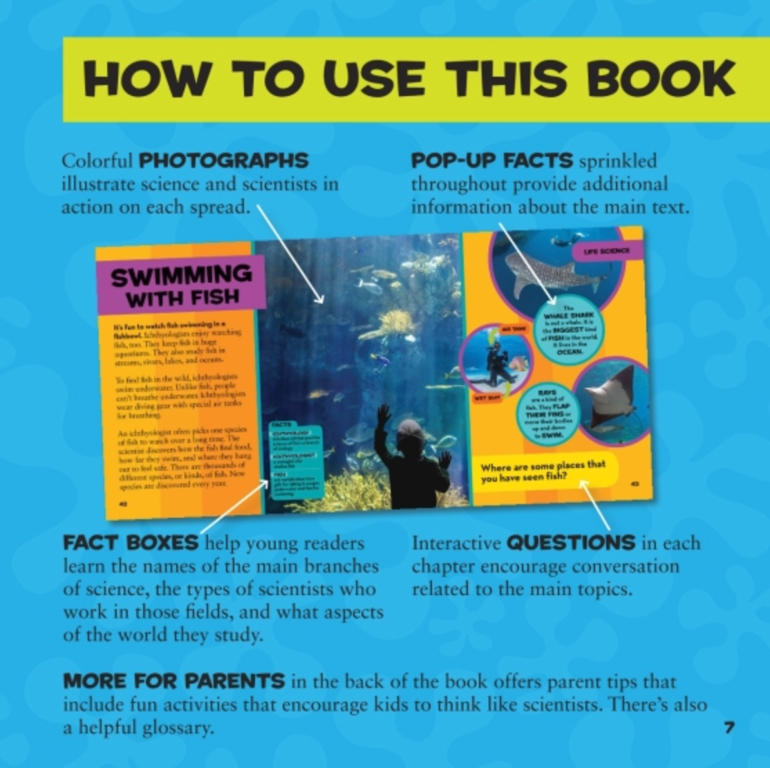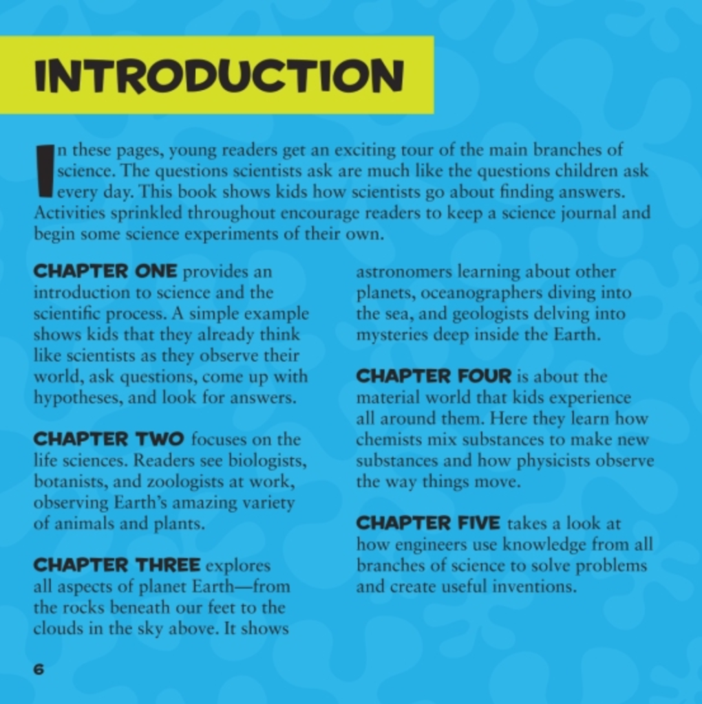 - Age-appropriate explanations of the things that scientists wonder about and learn