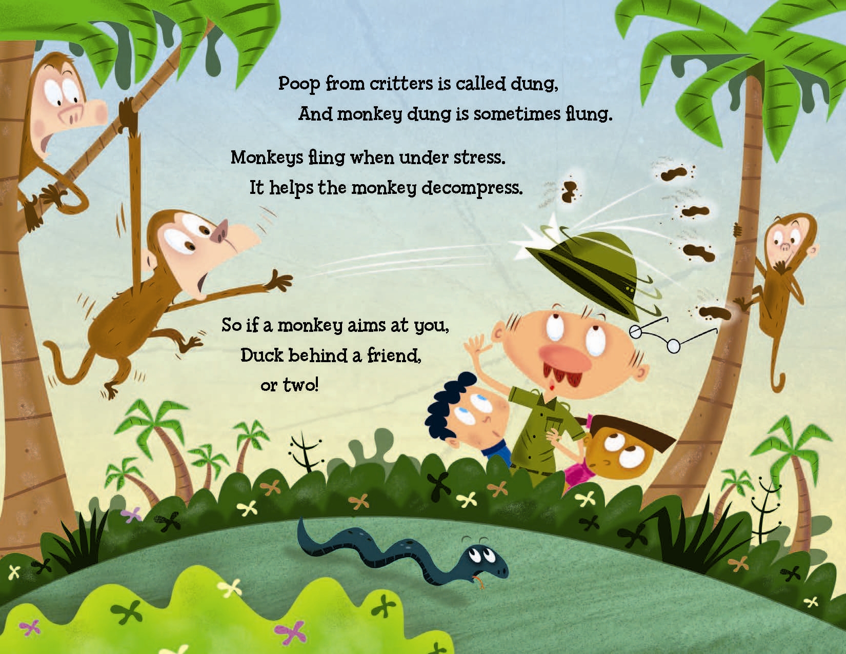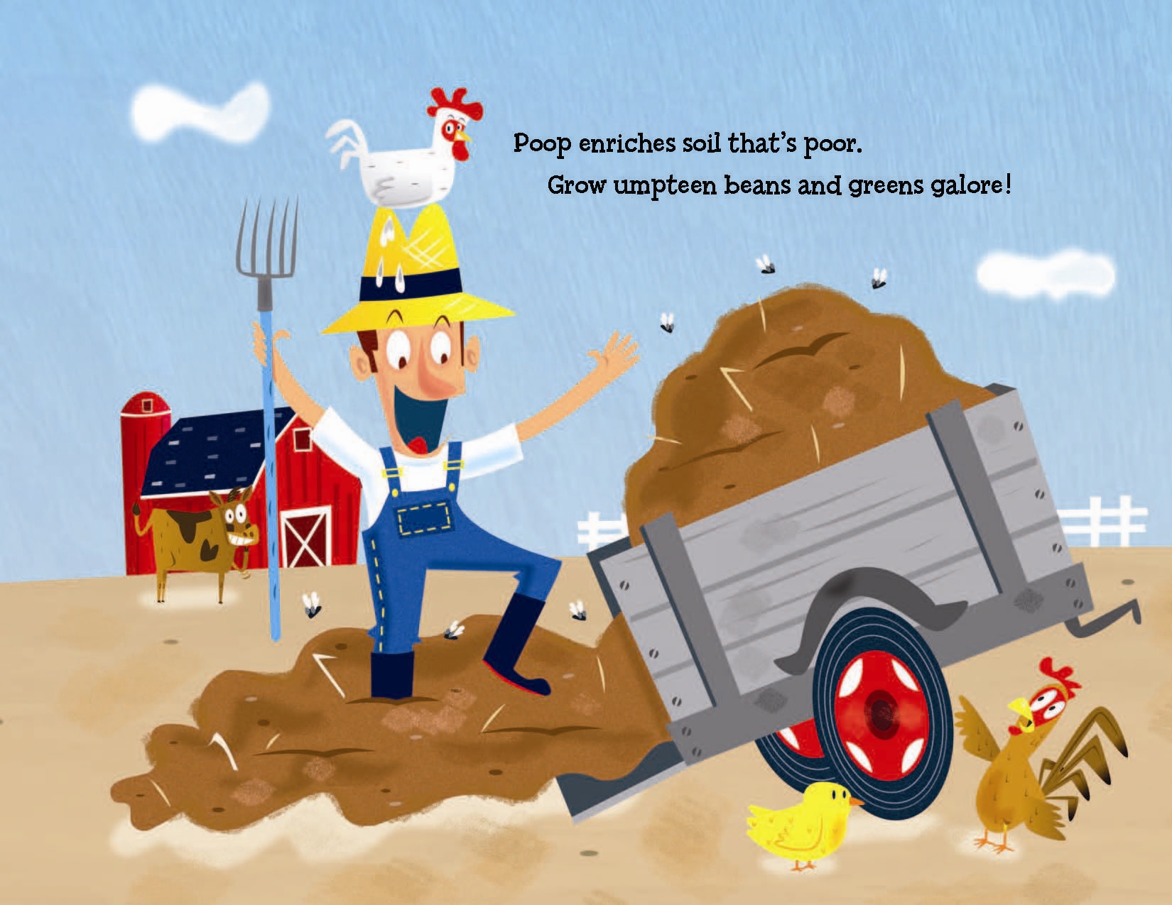 My “number two” picture book, Poopendous!, one of my five picture books in verse, has a portmanteau-word title that’s immensely fun to say. It’s a book that revels in humor and wordplay and is filled with joyful facts. I love asking students at my school appearances if the word “poopendous” can be found in the dictionary. And if not, how could I possibly use it for my title. Their responses never fail to delight me. The introductory couplet sets the stage for the inspired wackiness to come: