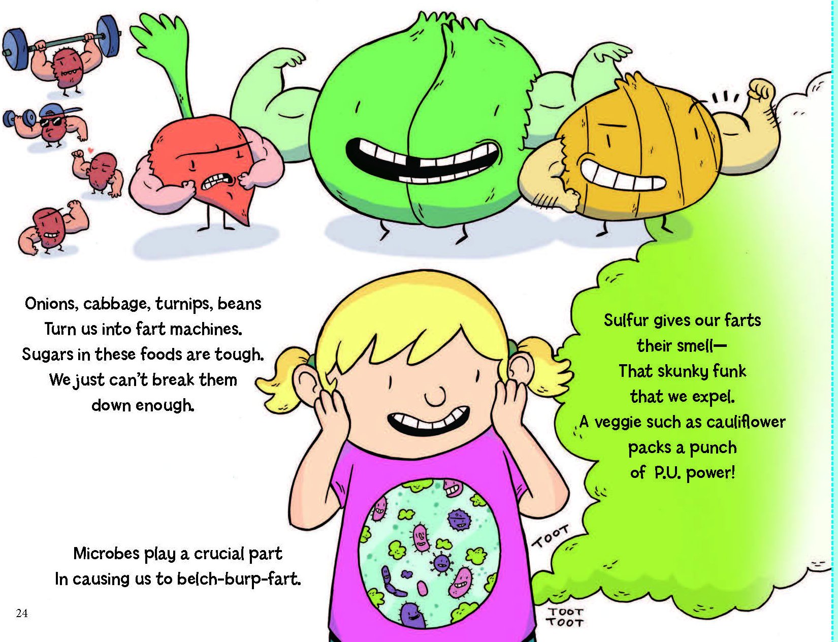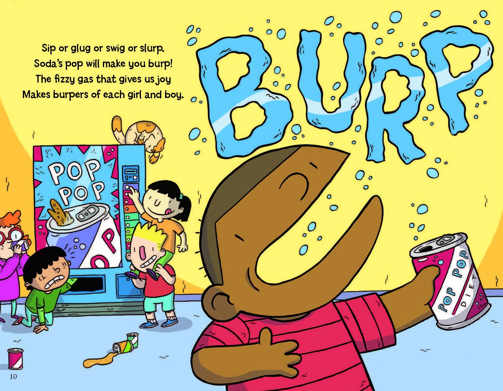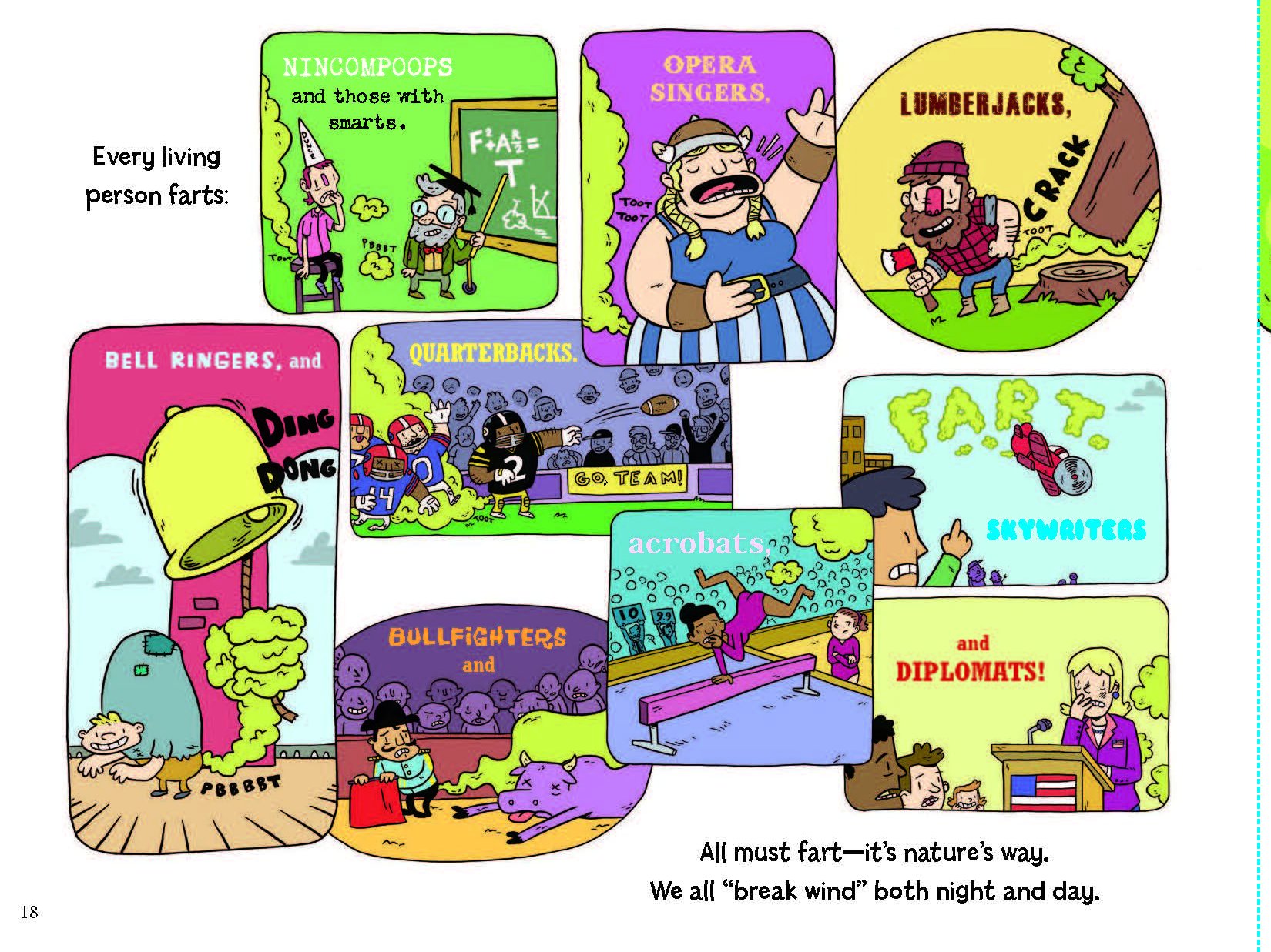 Belches, Burps, and Farts—Oh My!, whose title pays homage to a hilarious song from The Wizard of Oz, has more than its share of verbal merriment, as well as a panoply of incredible facts, all in a verse format. What sound do overly gassy cows make when they explode? Why, “cow-boom!” of course. And I was thrilled to work the word “nincompoops” into a couplet. One of my choicest nuggets can be found in this verse: