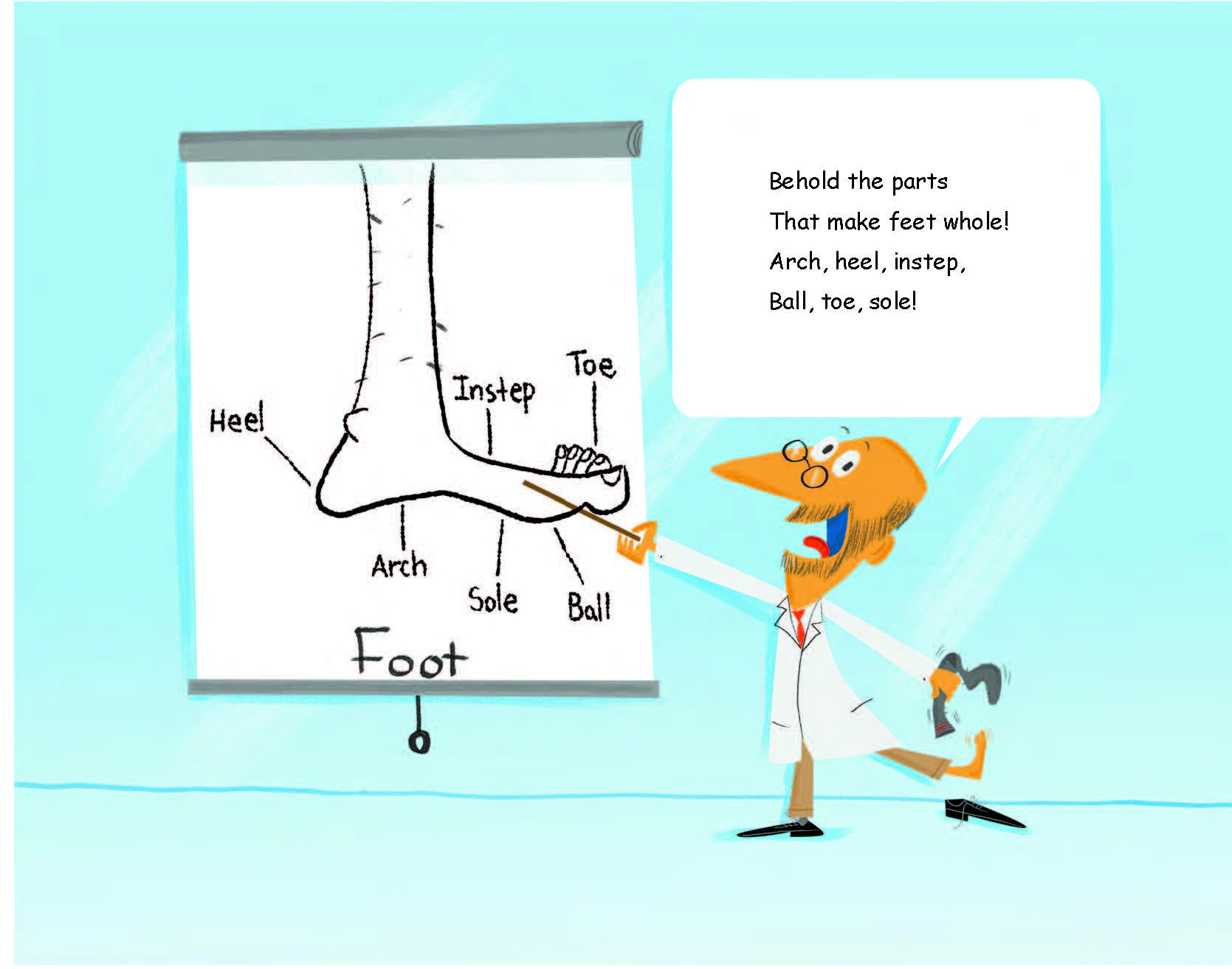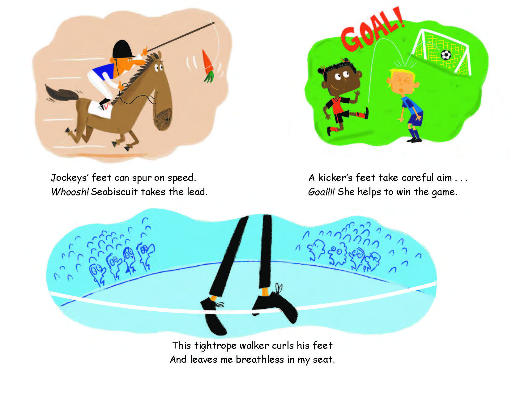 A very recent picture book, What’s Afoot! Your Complete, Offbeat Guide to Feet, published by a spanking-new startup publisher, boasts a punny title and a footload of humor. And like Belches, it features a two-page fact spread filled with amazing information. It begins with this amusing, pun-packed passage: