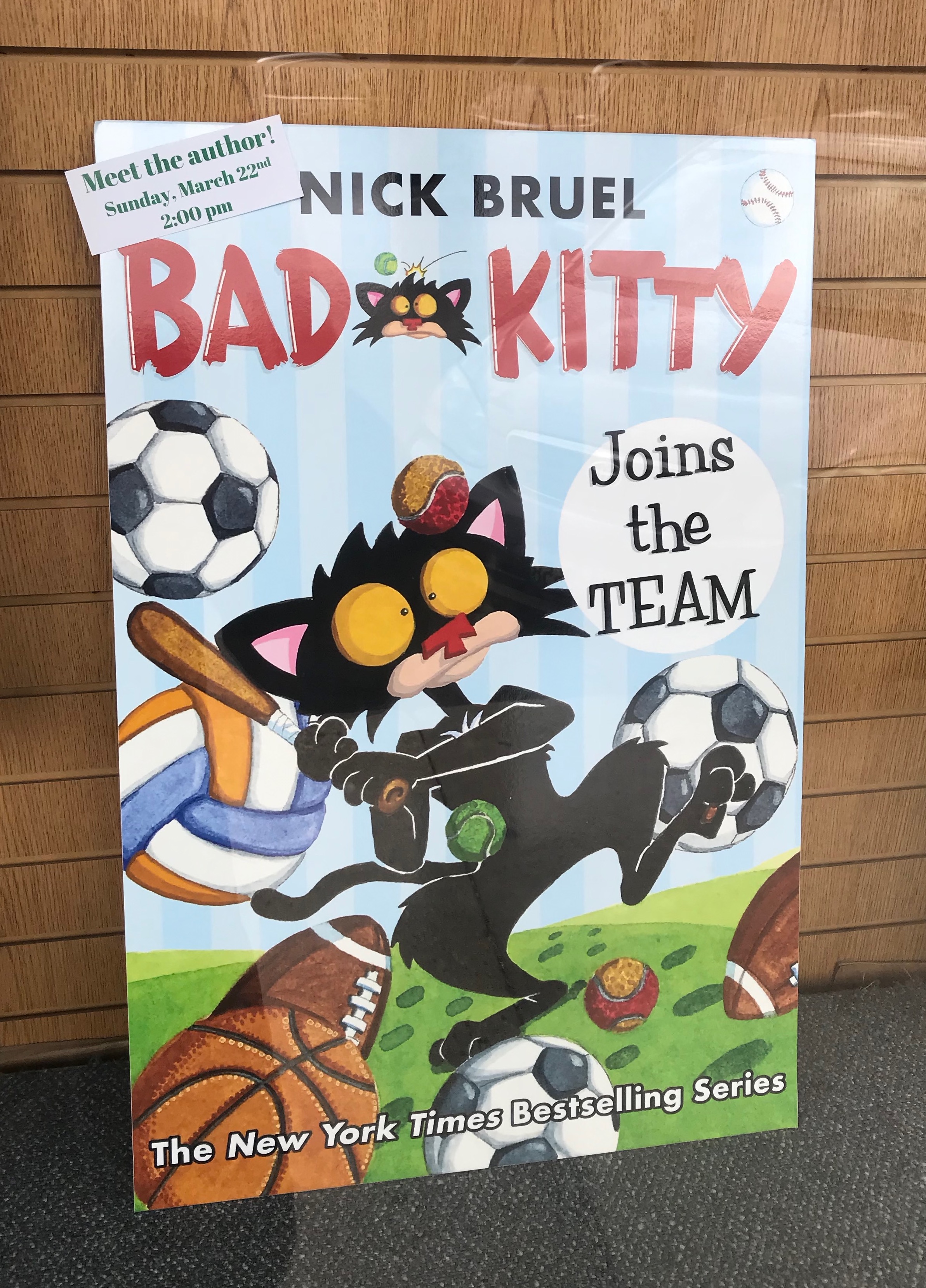 I have a three-year-old. Even though books don’t hold her attention, she still has her favorites, and the Bad Kitty alphabet book is one of them. Nick Bruehl was supposed to come to our local bookstore (Anderson’s of Naperville), but cancelled due to COVID-19. I know Brooke would have loved to have met Nick (who is very pleasant; I met him at a conference once), and she would have been thrilled to see the actual author sign her copy. Many authors attend events, have book signings, have contests, etc. If a kid attends an event and has a good time, that good time is linked to books. Also, if they personally like an author because that author was kind to them, they may bother to read that particular author’s books in the future. (I can say that seeing the actual writer pen his name to her book would have blown Brooke’s mind).