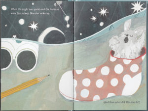 And in addition to that super cute stuffed monster, the book that comes with it introduces the reader to their monster and how he takes charge at night and explores their room and is just so much fun to read.
