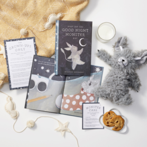 The goodnight monster is a creature that comes with its own box bed, a set of instructions for kids and parents, and a story. At night, children whisper fears to the goodnight monster, and the monster protects them in their sleep. The goodnight monster also has a blast doing it. It tries on clothes from the drawers, plays with toys in the room, etc. as it waits for the child to get up. Here’s my favorite part for one of my children who wakes up grumpy—in the morning, the child can hold the monster if they are feeling crabby (we’ve utilized this quite frequently).