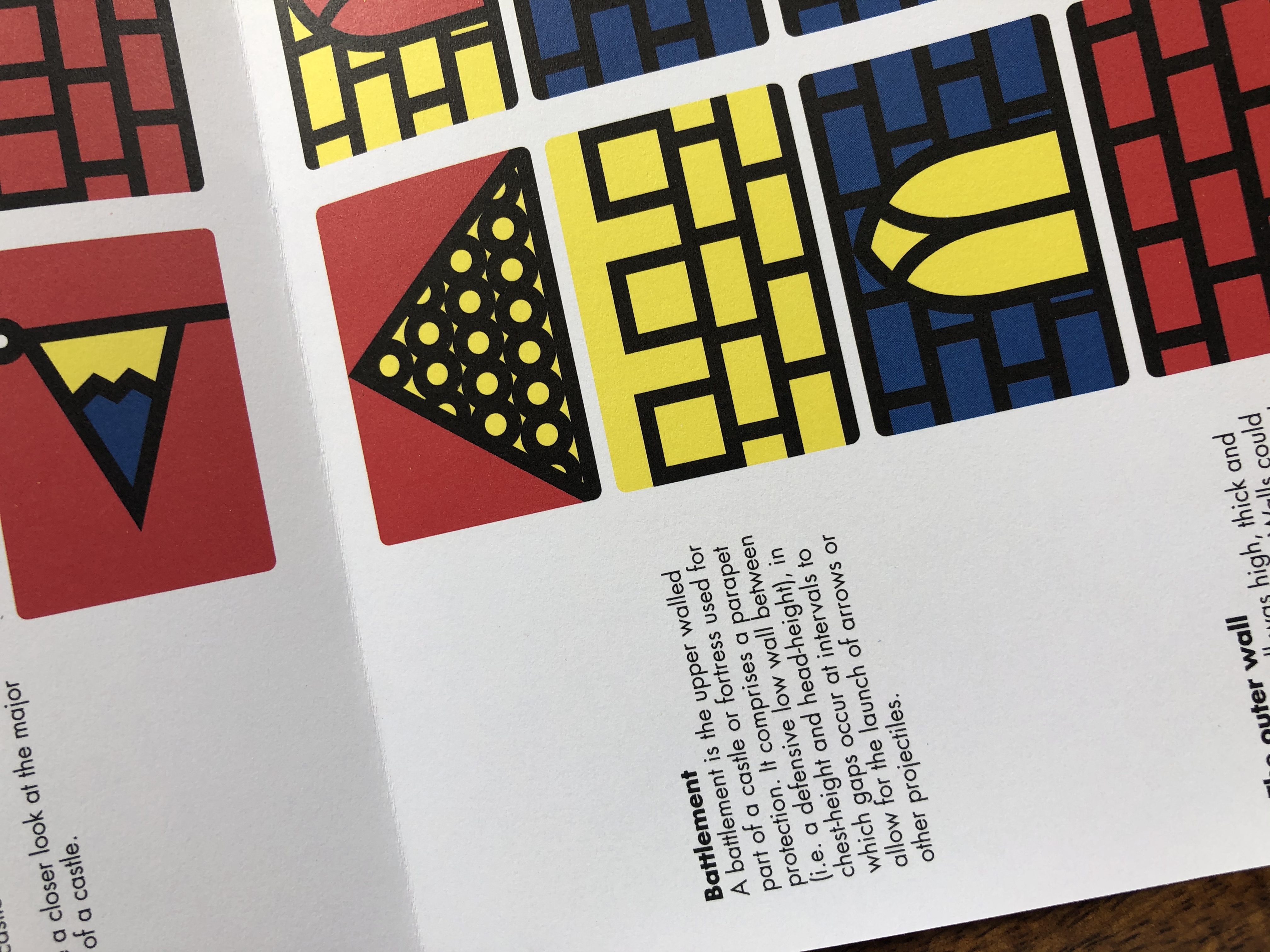 Here’s a closeup of one of the informational sections about castles. Younger kids might slot the castle together haphazardly, but older kids would enjoy choosing intentionally the placement of the items of their castle. For instance, a battlement might be better placed at the top of the castle to allow for safety from invaders from far away!