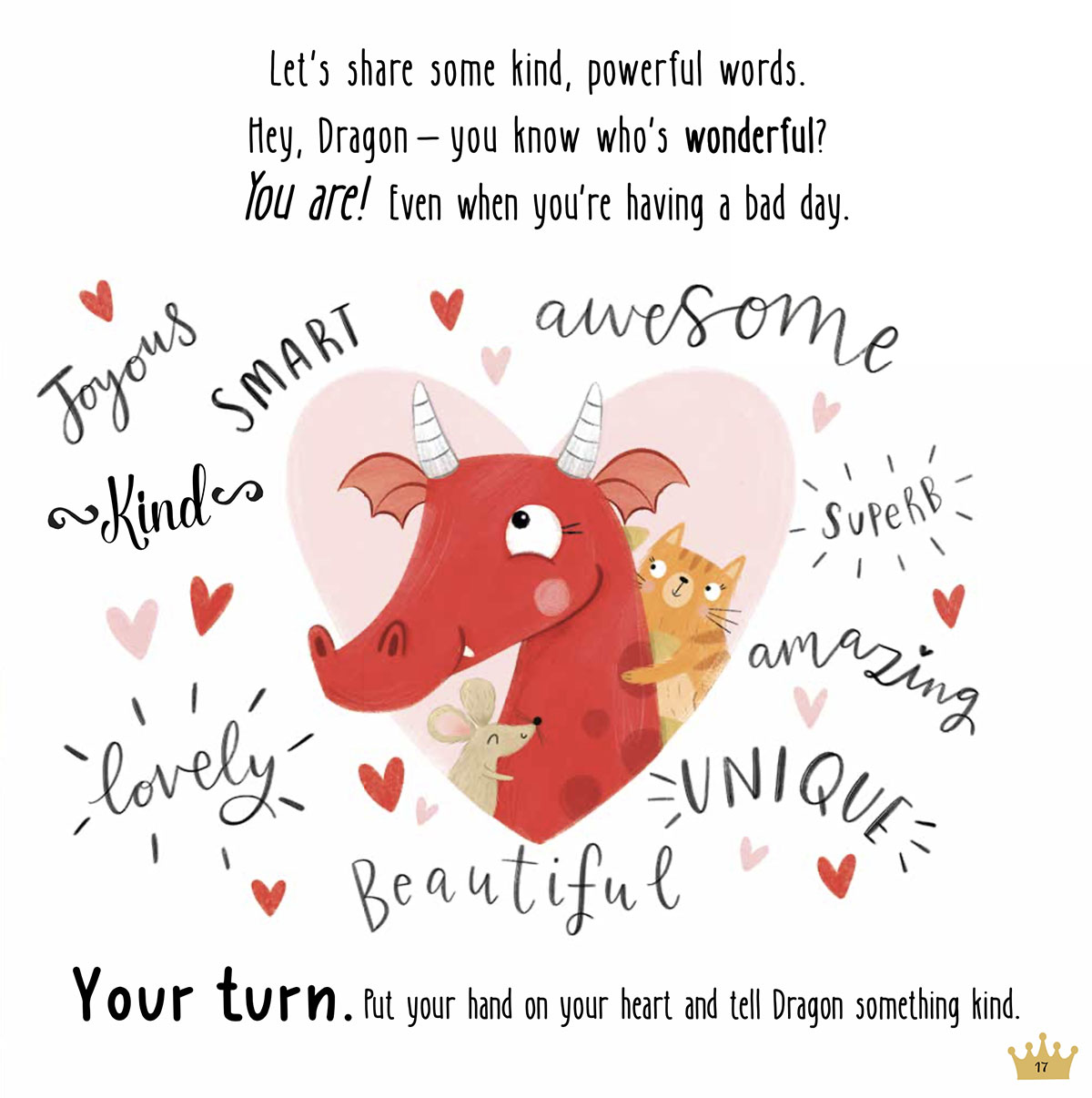 The activities the reader does with the dragon are great because they are all things that could be used in real situations of sadness or loneliness such as counting to ten slowly, positive words, and exercise.