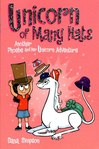 Trent is reading during family reading time: Unicorn of Many Hats by Dana Simpson