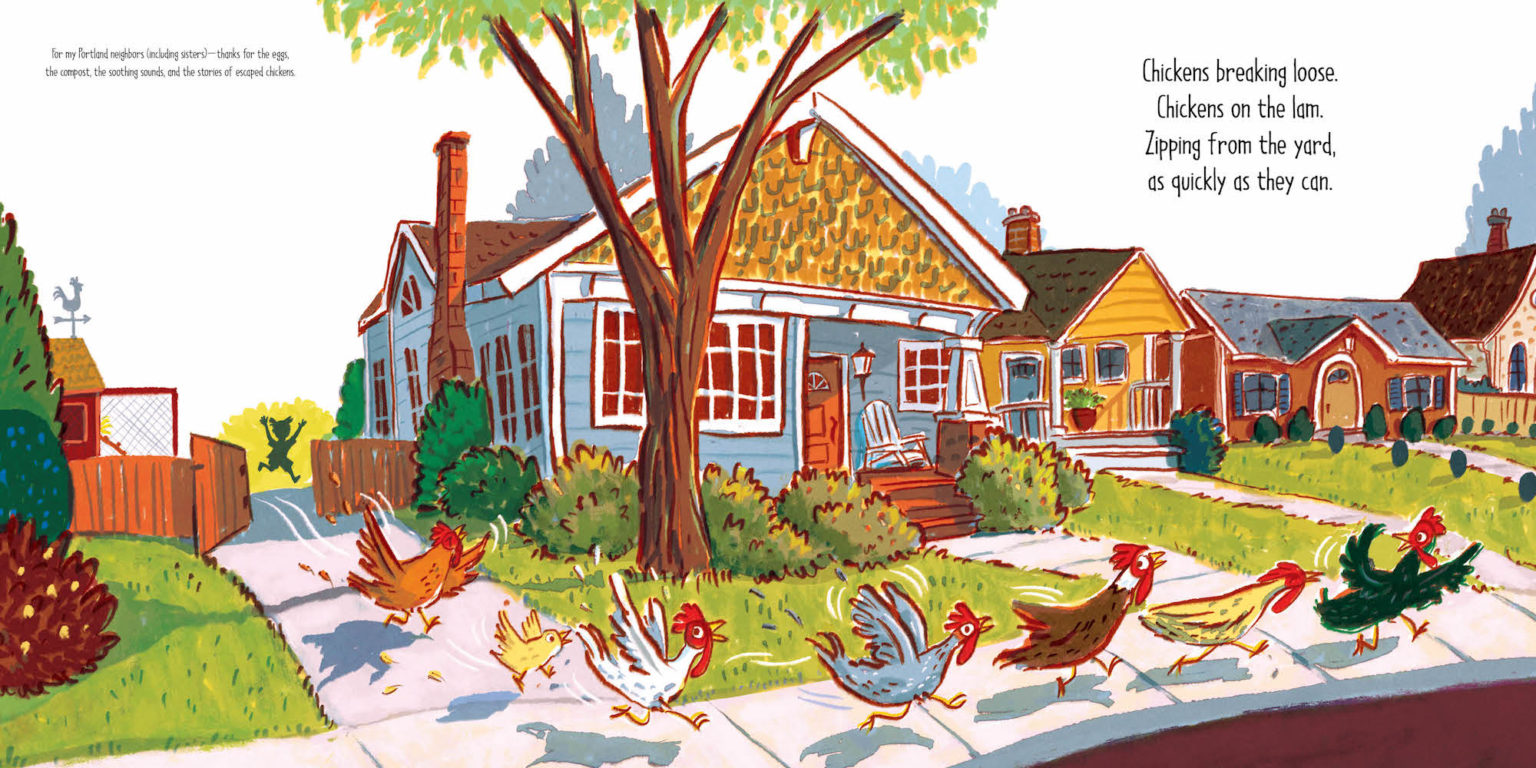 Yes, we have chickens ‘on the loose’ here in Denver, too. What fun this is to create a book about them! Thanks, Jane & Kellee!