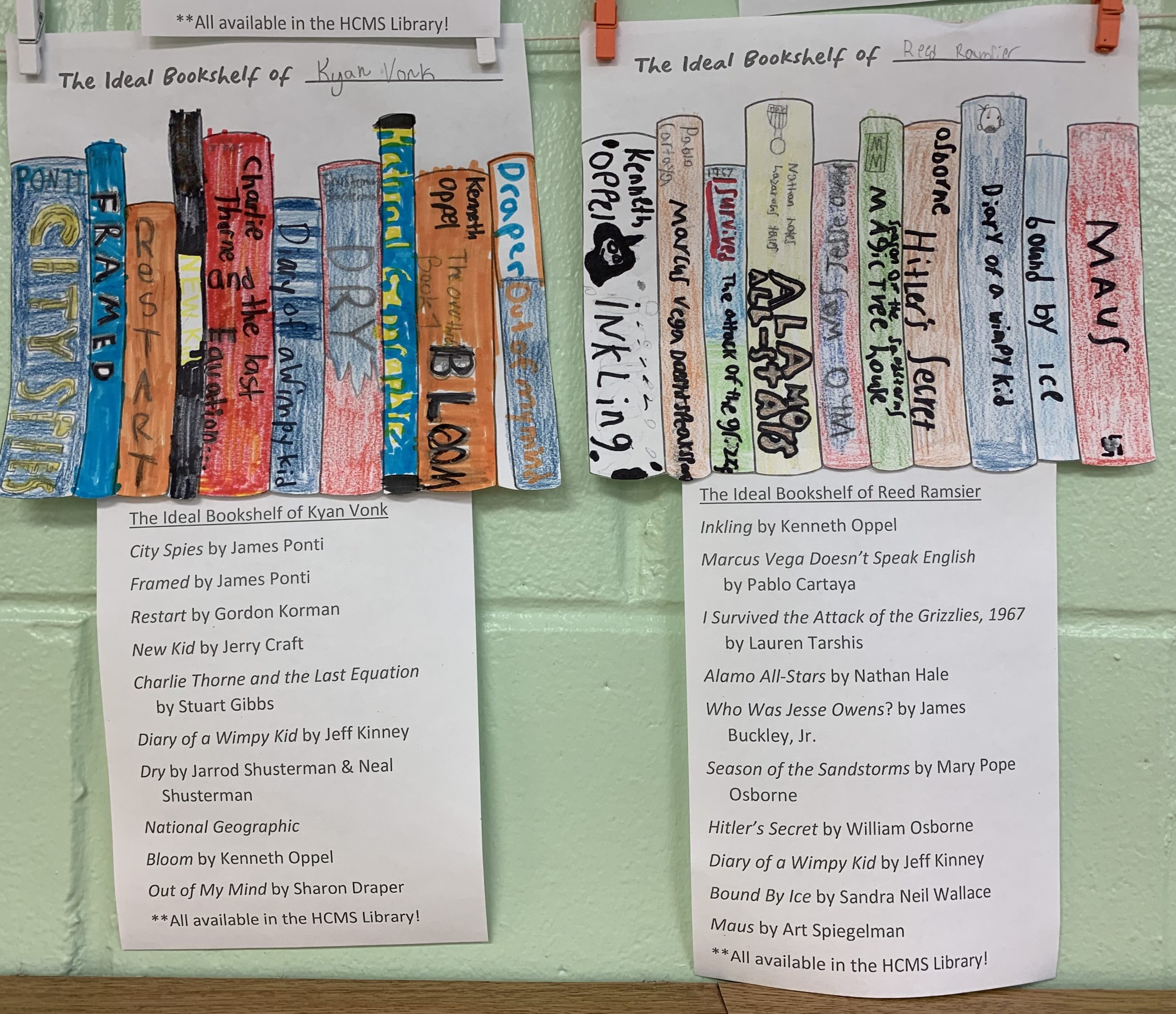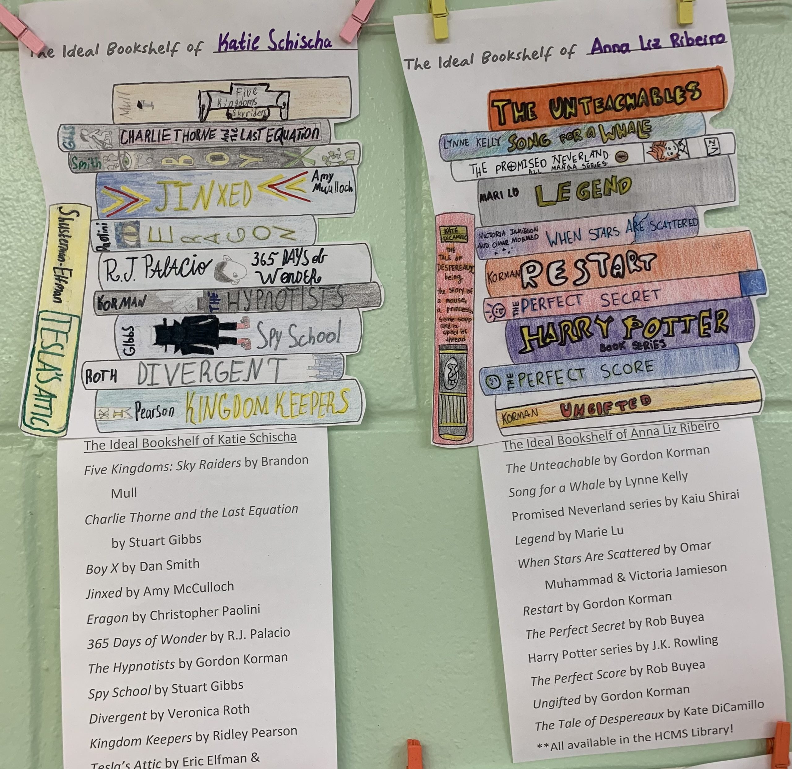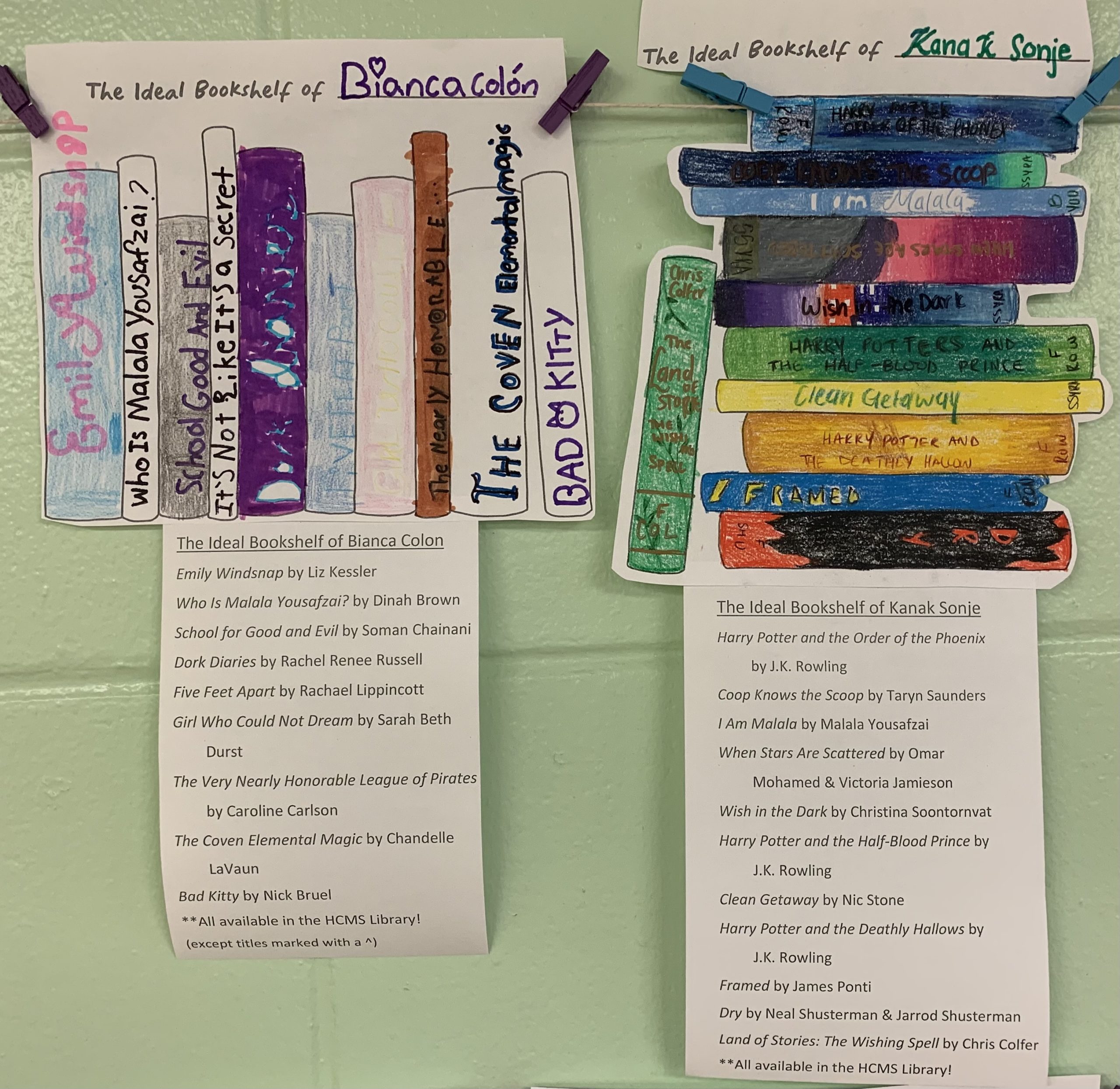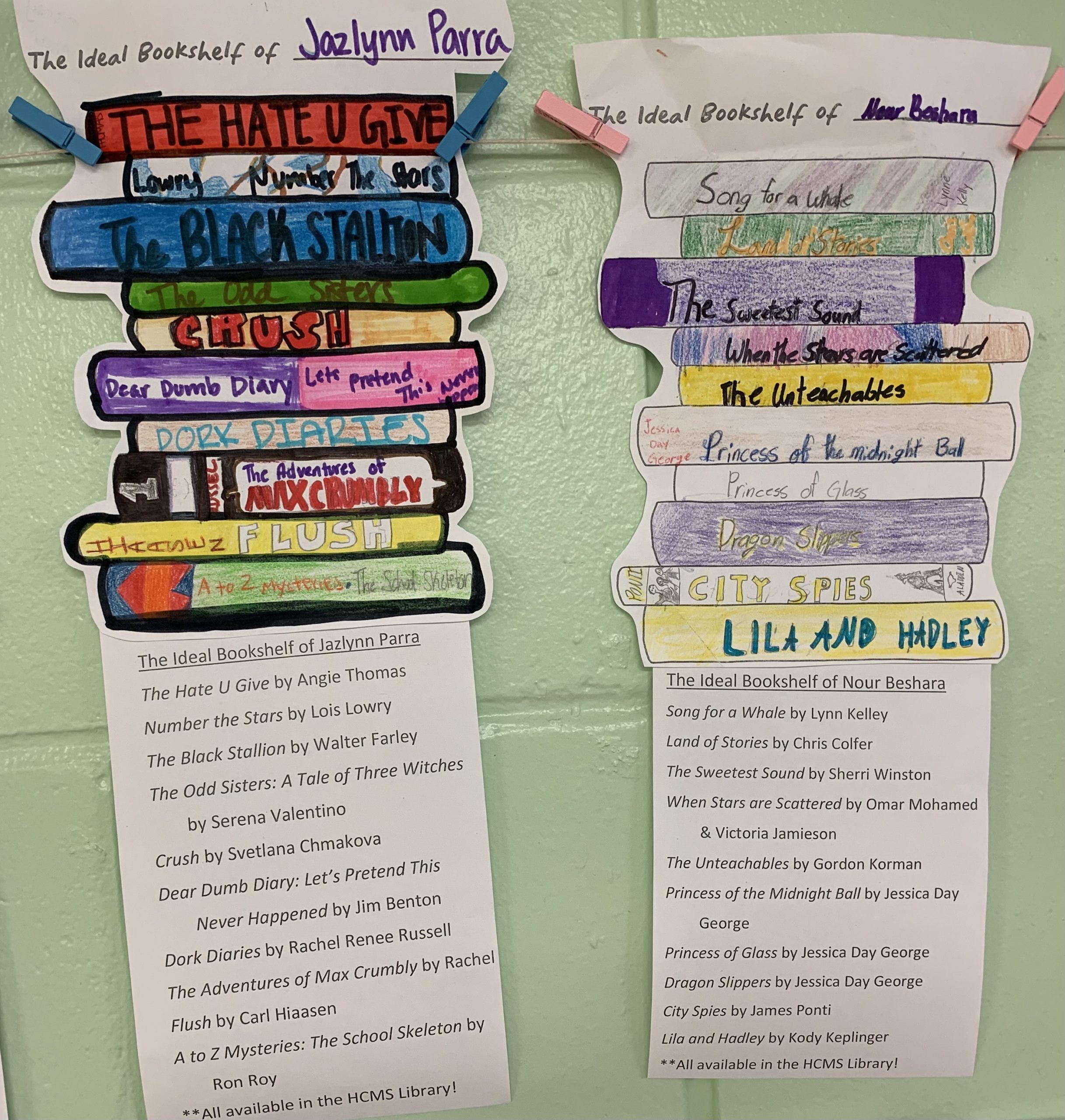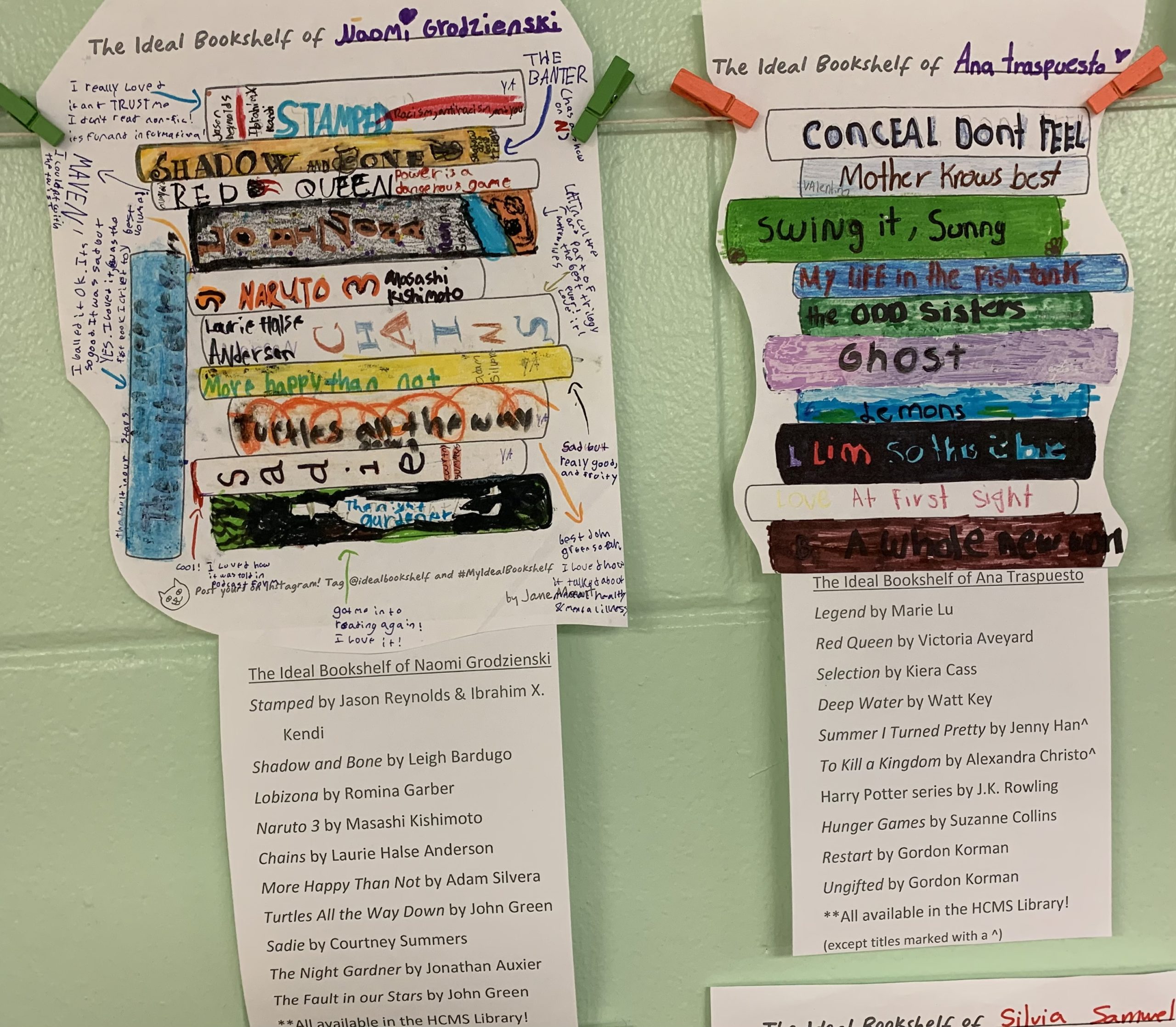 I love following Ideal Bookshelf on social media, and I was so happy to find out that they provide templates to use to make your own ideal bookshelf, and I was so excited to have my Student Literacy Leaders make theirs! They are all displayed in the library now, and I wanted to share them all with you: