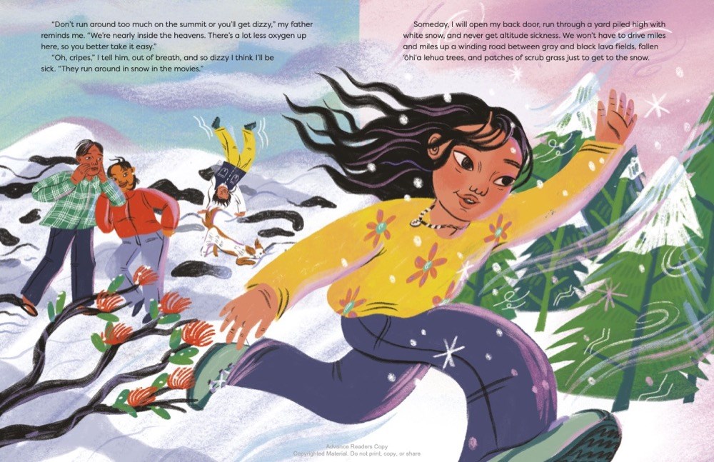 Claire has been surrounded by the deep blue waves of Hapuna Beach and the magnificent mountains of Hawai’i all her life, but has never, ever seen snow. When her father drives her and her family to the top of the Mauna Kea, she can’t help but to be disappointed…it’s not the winter wonderland she’s always dreamed of. And that’s what she wants, more than anything.