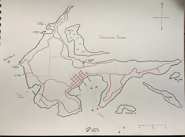 One of my favorite parts of writing The Swallowtail Legacy 1: Wreck at Ada’s Reef was drawing and redrawing the map of Swallowtail Island. The book starts off with the protagonist and her family arriving by ferry at the island, which is in western Lake Erie. It’s fictional, a composite of some islands that I’ve gotten to know over the years: Put-in-Bay, Mackinac, Nantucket, Carleton, Harker’s, and more. For instance, I’ve always loved the “no cars” aspect of Mackinac Island, so I made that part of Swallowtail (although golf carts are allowed).