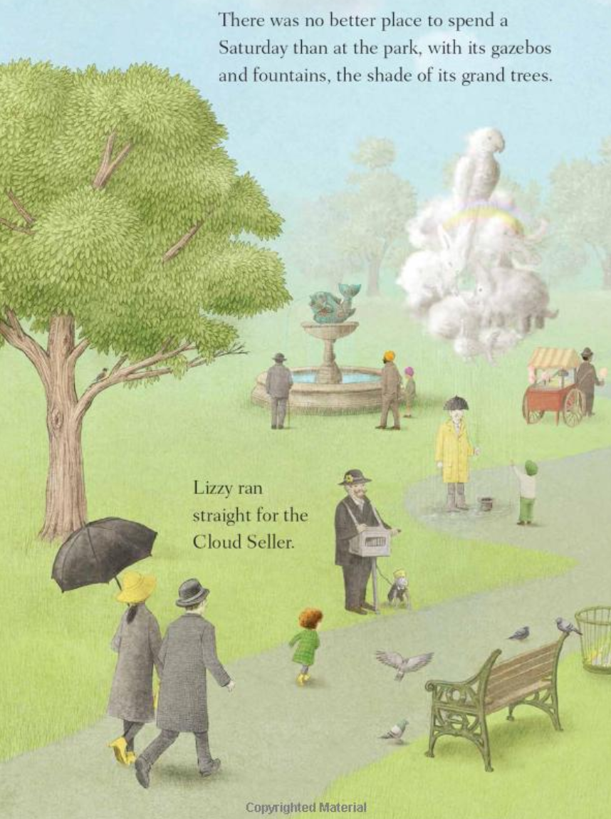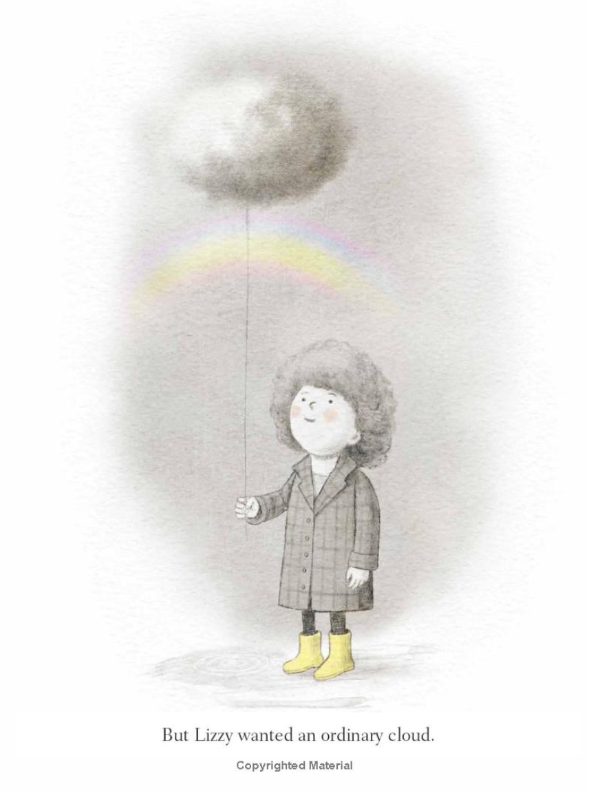 Soon, she’s taking Milo out on walks with her family, watering Milo right on schedule, and seeing Milo grow and grow. But what happens when her pet cloud gets too big for Lizzy to handle?