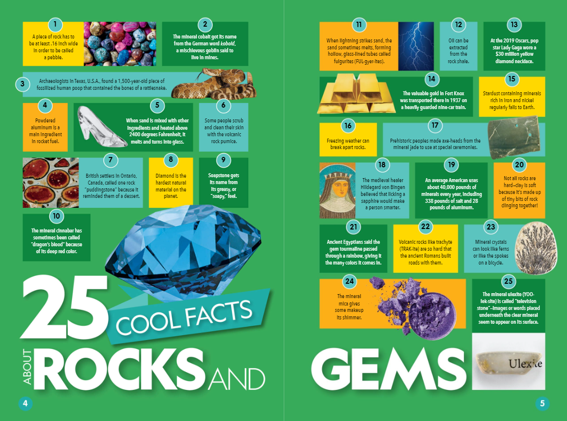 Summary: Get ready to be dazzled by some of the shiniest, most colorful, useful—and even dangerous—rocks, minerals, and gems on the planet! In this Level 3 reader, discover fascinating facts about the incredible rocks and minerals under our feet and deep in Earth’s crust. Budding geologists will love reading about how rocks form, learning the names and features of the coolest rocks and minerals, and exploring rare and beautiful gemstones.