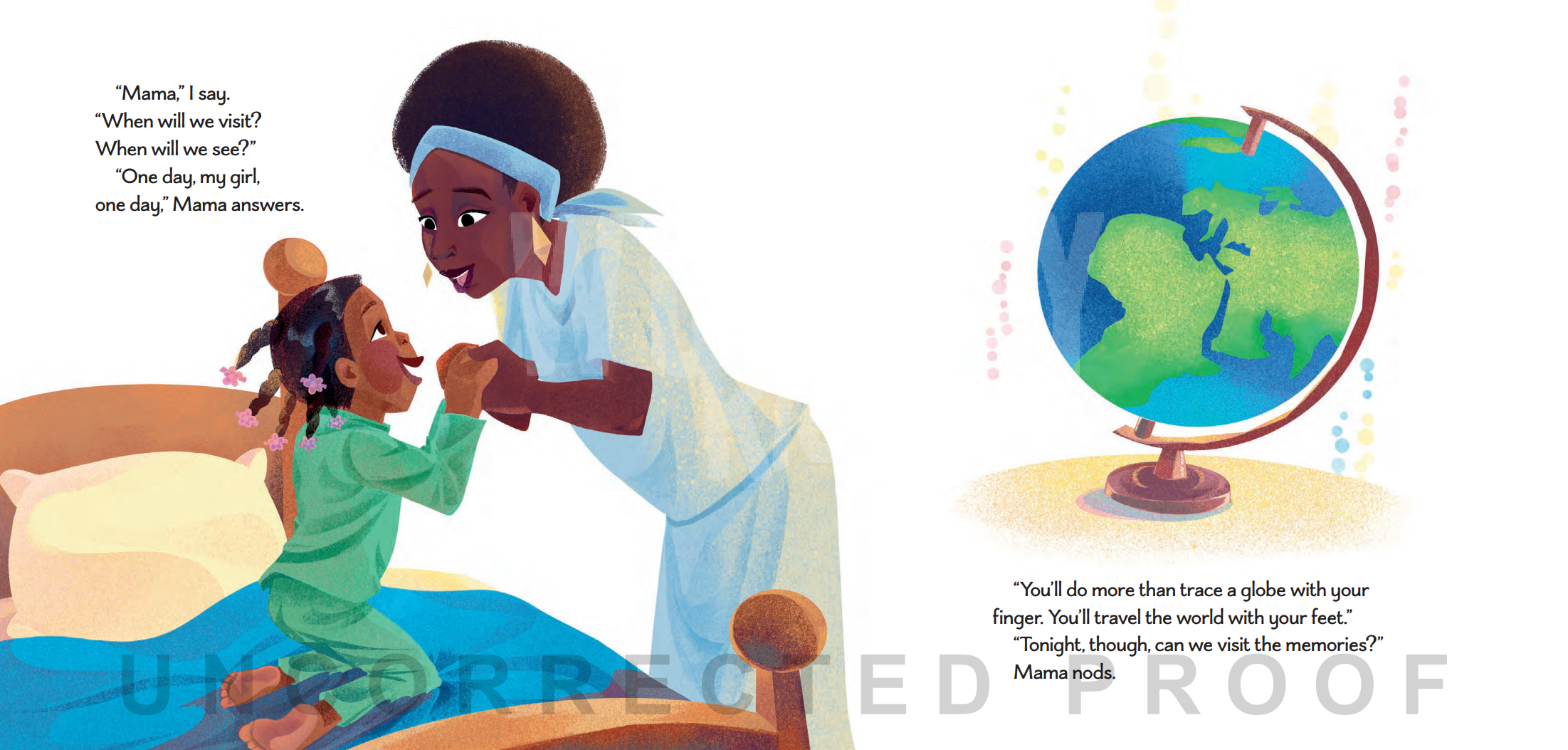 In her first picture book, author Patrice Gopo illuminates how family stories help shape children, help form their identity, and help connect them with the broader world. Her lyrical language, paired with Jenin Mohammed’s richly textured artwork, creates a beautiful, stirring portrait of a child’s deep ties to cultures and communities beyond where she lays her head to sleep.