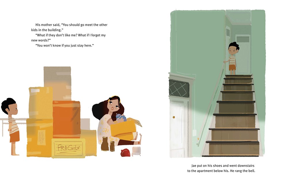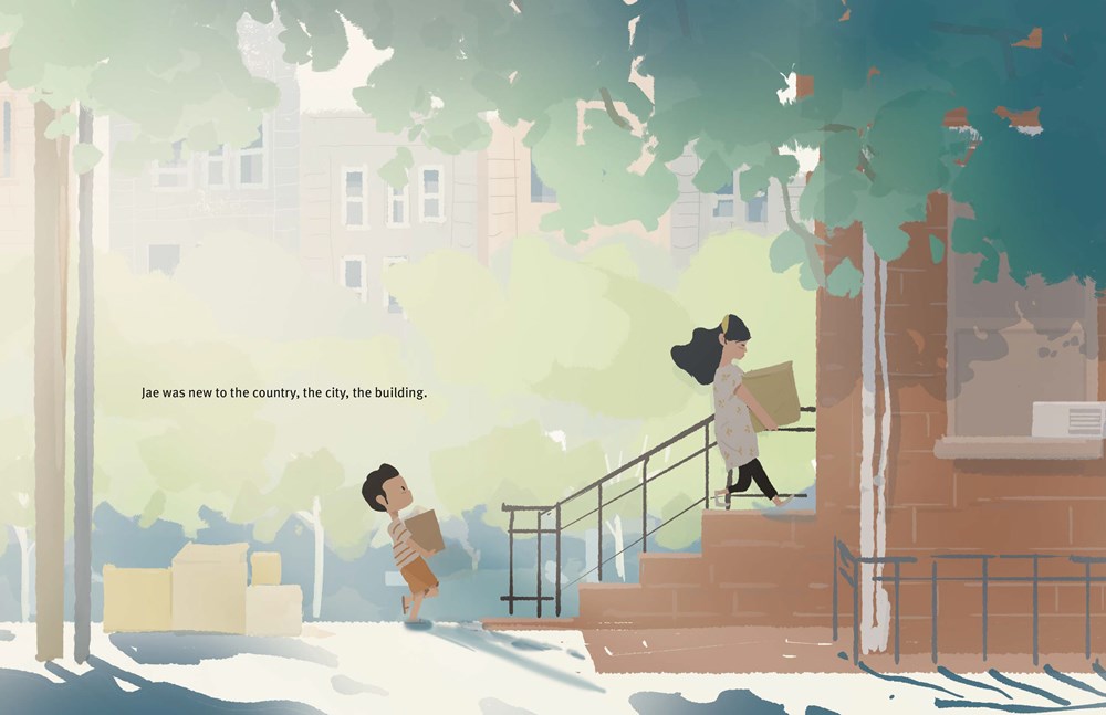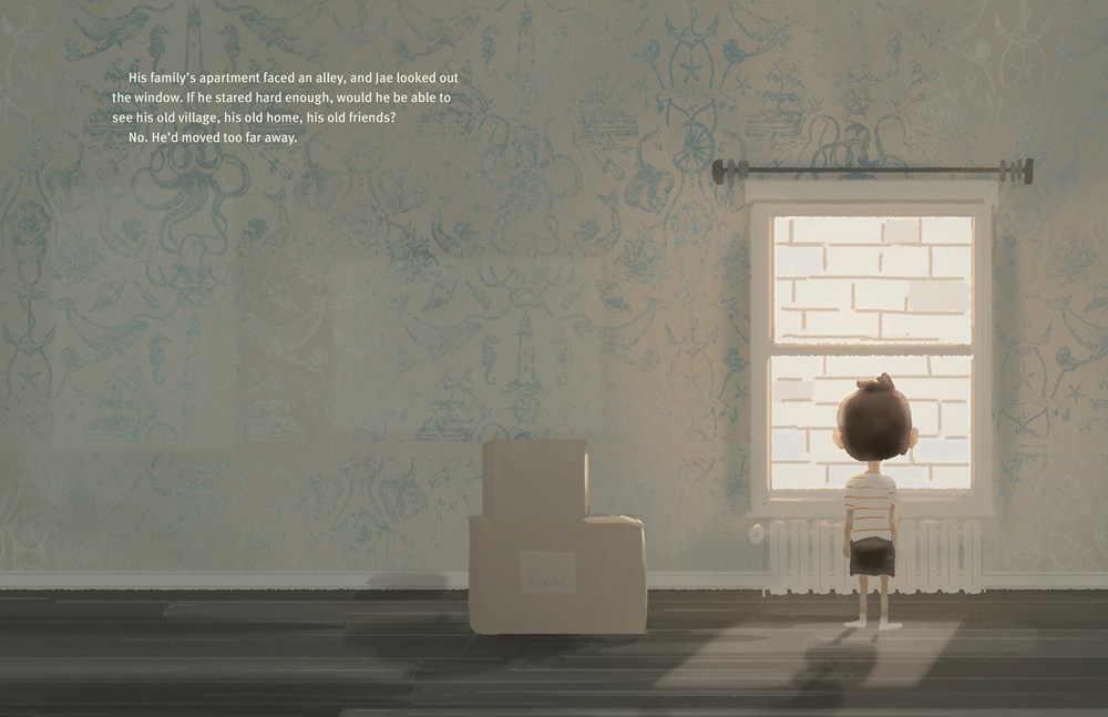 When Jae looks out the window of his new home, he wishes he could still see his old village, his old house, and his old friends. But his new apartment feels empty and nothing outside is familiar. Jae just arrived from South Korea and doesn’t even speak the new language.