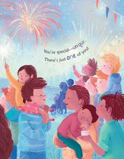 Review: I really enjoyed reading There’s Only One You. It is a wonderful book embracing diversity, inclusion, and individuality. The book is filled with beautiful illustrations demonstrating what makes us unique. The book is written in a rhythmic style, so it is engaging for young readers. Each spread beautifully displays the range of physical characteristics, personalities, or abilities individuals may have. The book is filled with bright vivid colors. Each page is filled with many details. Readers will enjoy exploring each page. The book and the illustrations go beyond inclusion of physical characteristics and incorporate physical attributes and challenges such as being in a wheelchair, using arm crutches, a walker, or using a hearing aid. The book also includes multiple spreads showing differences in families. Illustrations include families that comprise of a mom and a dad, or two moms, or two dads, or a single mom, or a single dad. The authors and illustrator do an excellent job displaying diversity within each page. The book also addresses differences in personalities, such as “crying when you’re sad, or keep tears inside”. The story emphasizes that being unique is what we all have in common. It is what makes us extraordinary.