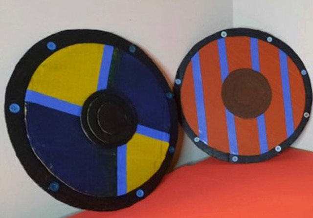 - Make your own Viking shield – In Three Little Vikings, Helga carries a shield for protection. You could try crafting your very own Viking shield to protect you from that horrid troll! For this activity, you’ll need some cardboard, scissors, glue, markers, tape and any items you’d like to decorate your shield with. The shield is straightforward to make, created by cutting out several circles from card for the shield and a strip on the back for the handle. Have a go at decorating your shield with markers, tape and perhaps some jewels or buttons!