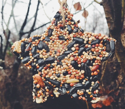 - Hang the birdseed cookies from tree branches or a bird feeding station.