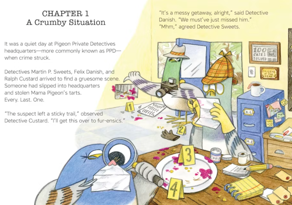 Pigeon Private Detectives: The Case of the Missing Tarts, Christee Curran-Bauer’s author-illustrator debut, pokes fun at detective procedurals with kid-friendly humor!