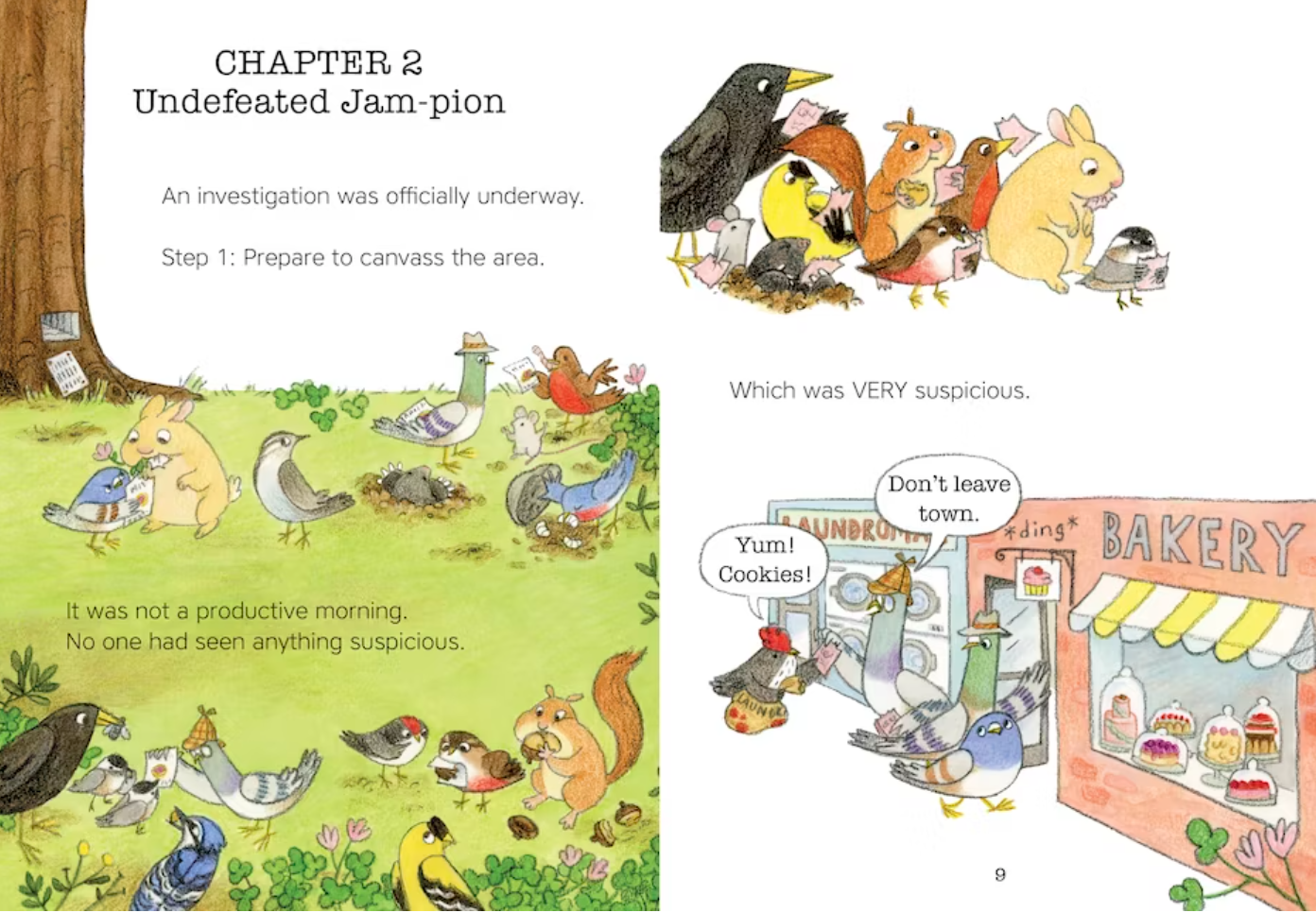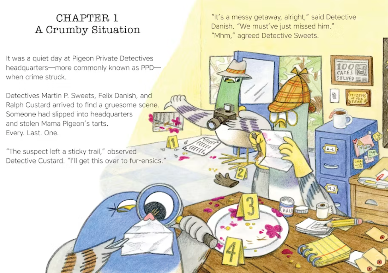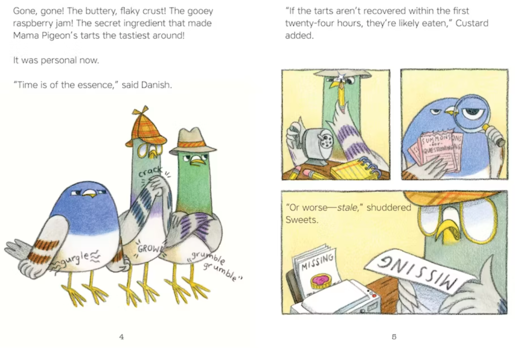 Summary: The Pigeon Detectives are looking forward to devouring a delectable platter of jam tarts—until the tasty treats are stolen from right under their beaks! With tummies grumbling, the PPD are on the hunt for clues, but can the detectives recover the tarts in time before they are all eaten—or worse—stale? As the list of suspects grows longer, our heroes wonder if they’ll ever catch the thief jam-handed.