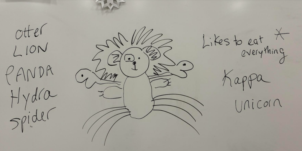 Try this with your students: Using a large pad of paper or wipe board, ask your students to name 5 creatures (including animals, mythical beings, robots, aliens, etc.) List those on the board, then talk about at least one defining trait for each. Then it is your turn (or perhaps another student can volunteer) to make up a new animal or creature based on all 5 listed. This is where it gets interesting! But kids love to see the results. They can also each draw one on their own. Or for younger children, you can provide puzzle piece cutouts of different animals, split in 3 pieces. Children can take turns making new, mixed up animals, by rearranging the animal parts.