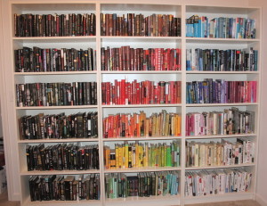 4. I have color-coded bookshelves because it is easier for me to find books that way. Here is one set: