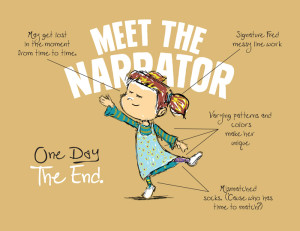 Also great news is that I’m working with Rebecca Davis at Boyds Mills Press to illustrate One Day, The End, which was written by Rebecca Kai Dotlich. And, since I think your readers might like to get the first sneak peek ever, I’m going to let slip a screen shot of the unnamed little girl who will star in this extremely creative book. This image is from my art direction concept that was just recently approved by the publisher. 🙂
