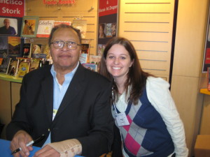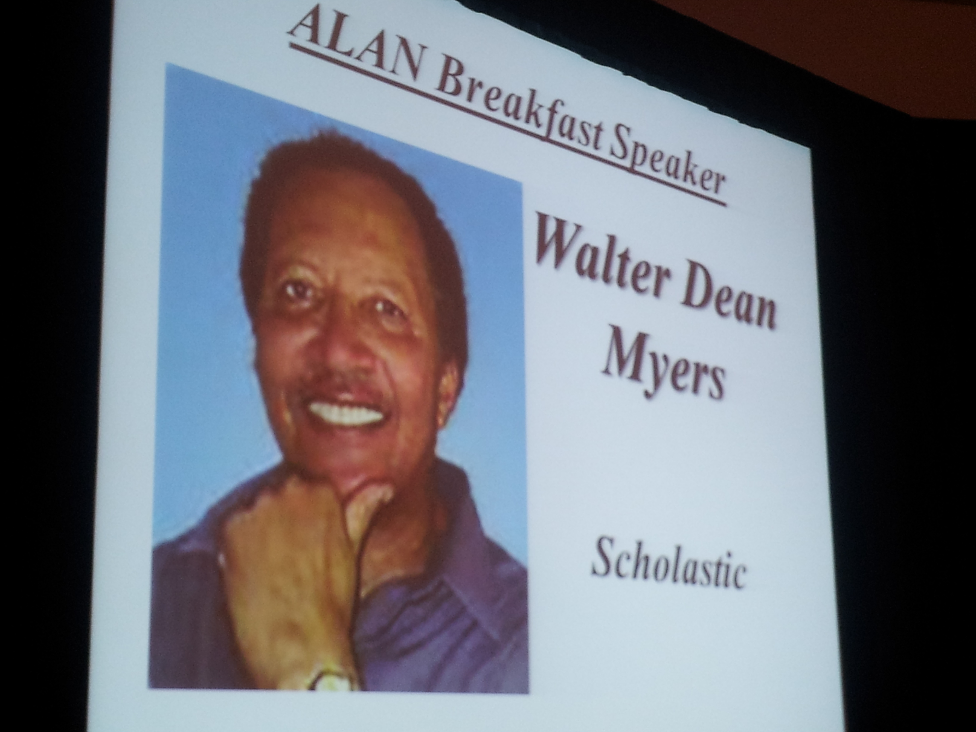 I’ve also been lucky enough to see him speak twice and meet him once. He was a true gentleman, advocate for literacy, and just had a way with words. In 2011, Myers spoke at ALAN and shared how writing was his passion, and he was lucky enough to have publishers that would let him do whatever he could pull off. MAN could he pull off some amazing things. In 2013, Myers was the ALAN breakfast speaker. His speech was about diversity (economic and race) and reading. He shared how he’d been going to prisons for over 20 years to speak to the youth there to promote literacy.  He reminded us that there are all types of children, and that “we need to acknowledge that these [diverse] kids exist,” and “you will save some lives by the choices of the books that you get into kids’ hands.” It was a speech that would make any person want to go out and change the world because we were listening to a person who had.