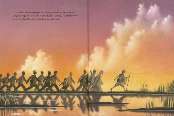 “Gandhi and the satyagrhis are ready to leave by dawn. I join a long line of people as the Mahatma begins walking. His pace is very fast. Even Rajiv has to breathe heavily to keep up.”